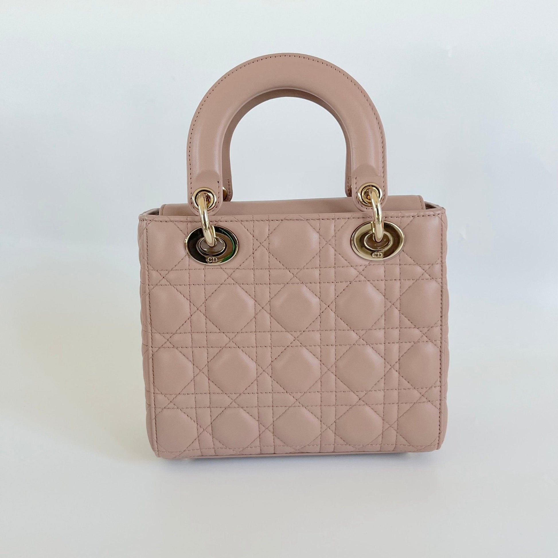 Dior Cannage taupe leather small lady Dior tote bag with gold-tone hardware