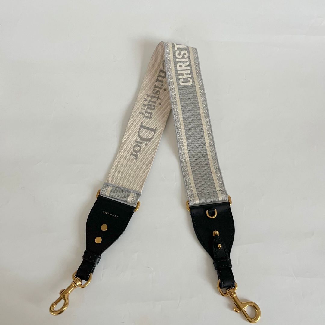 Dior White Leather Saddle bag with fabric strap with gold-tone hardware