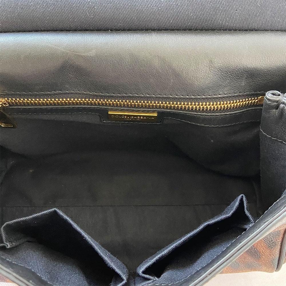 Description : Dolce & Gabbana Leopard Print Leather Medium Miss Sicily Top Handle Bag with a detachable strap. With black fabric lined interior with two open pockets and one zip pocket. Condition: Excellent, edge of detachable strap is damaged