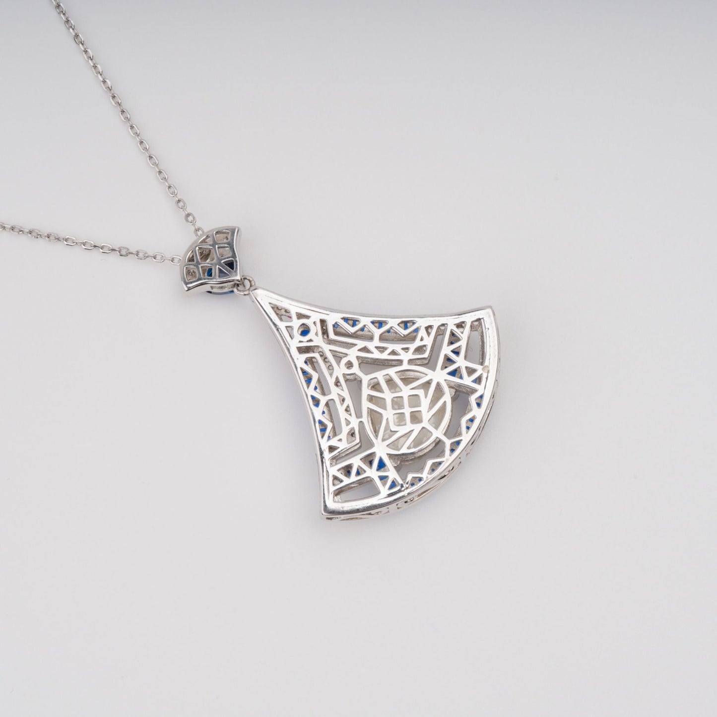 Doris Blue Ginkgo Leaf Gemstone Pendant Sterling Silver Necklace