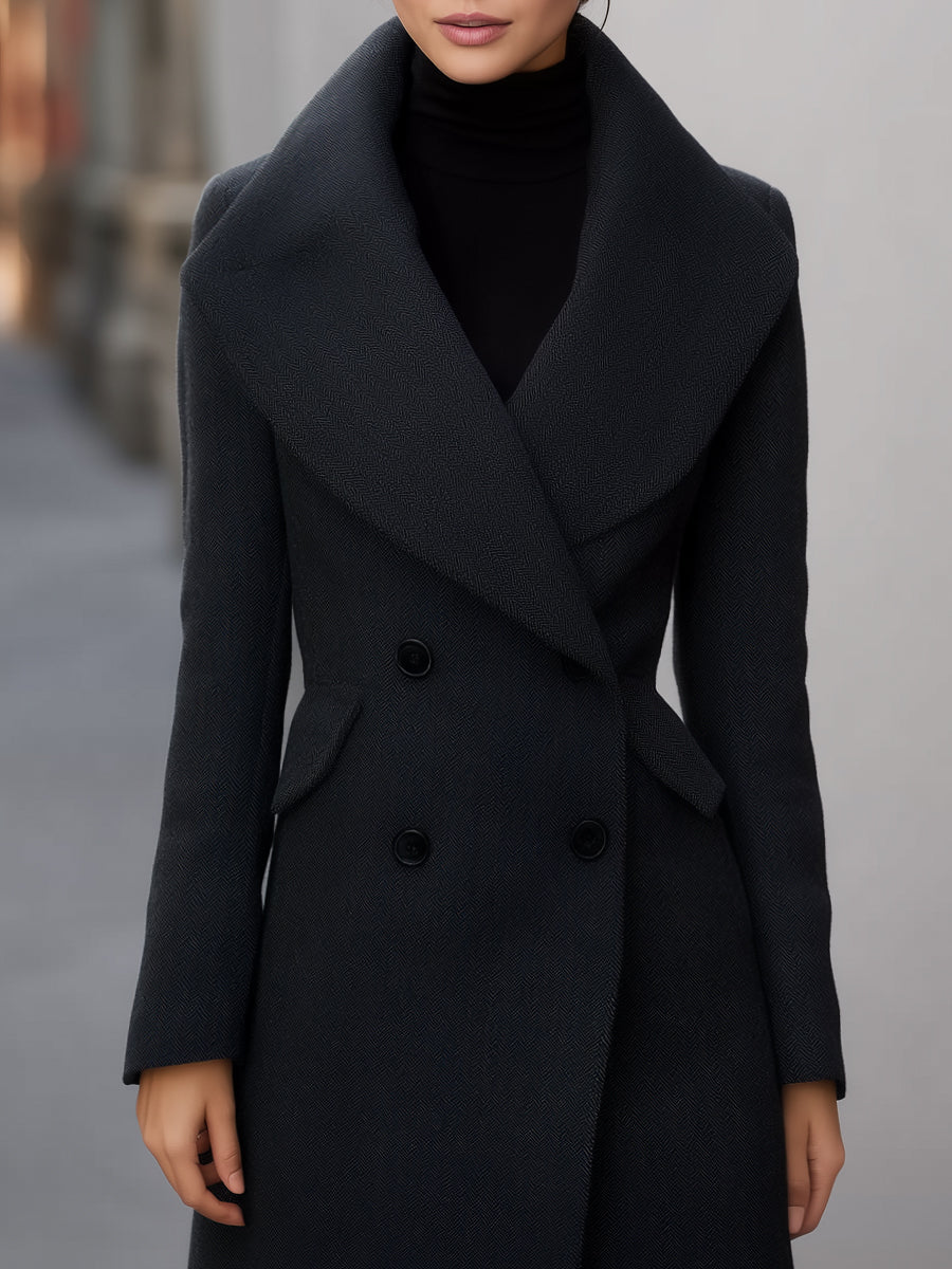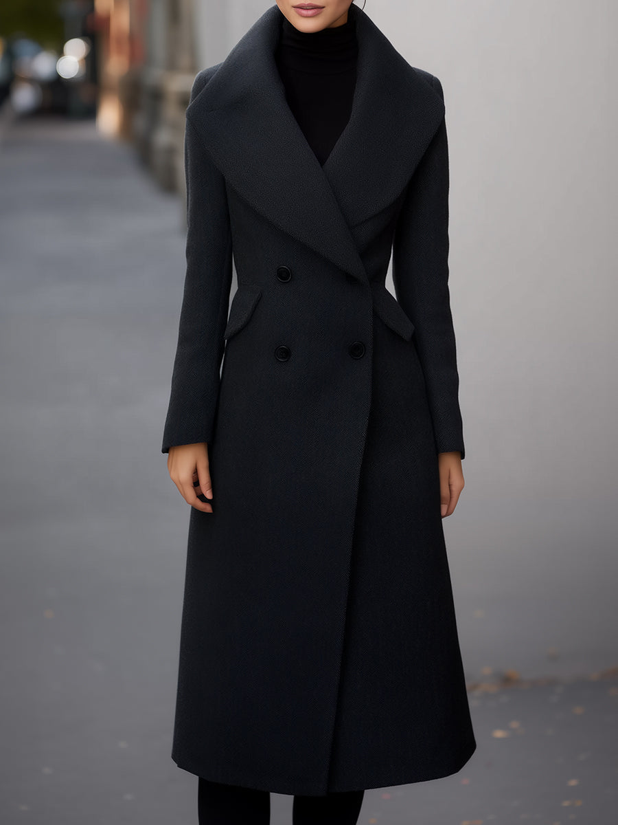 Double-Breasted Long Wool Coat With Oversized Shawl Collar