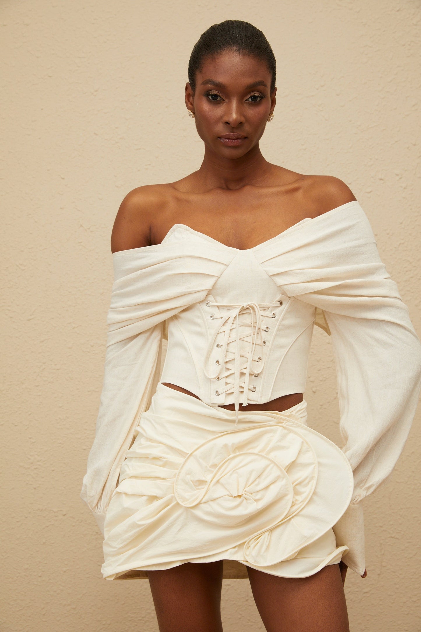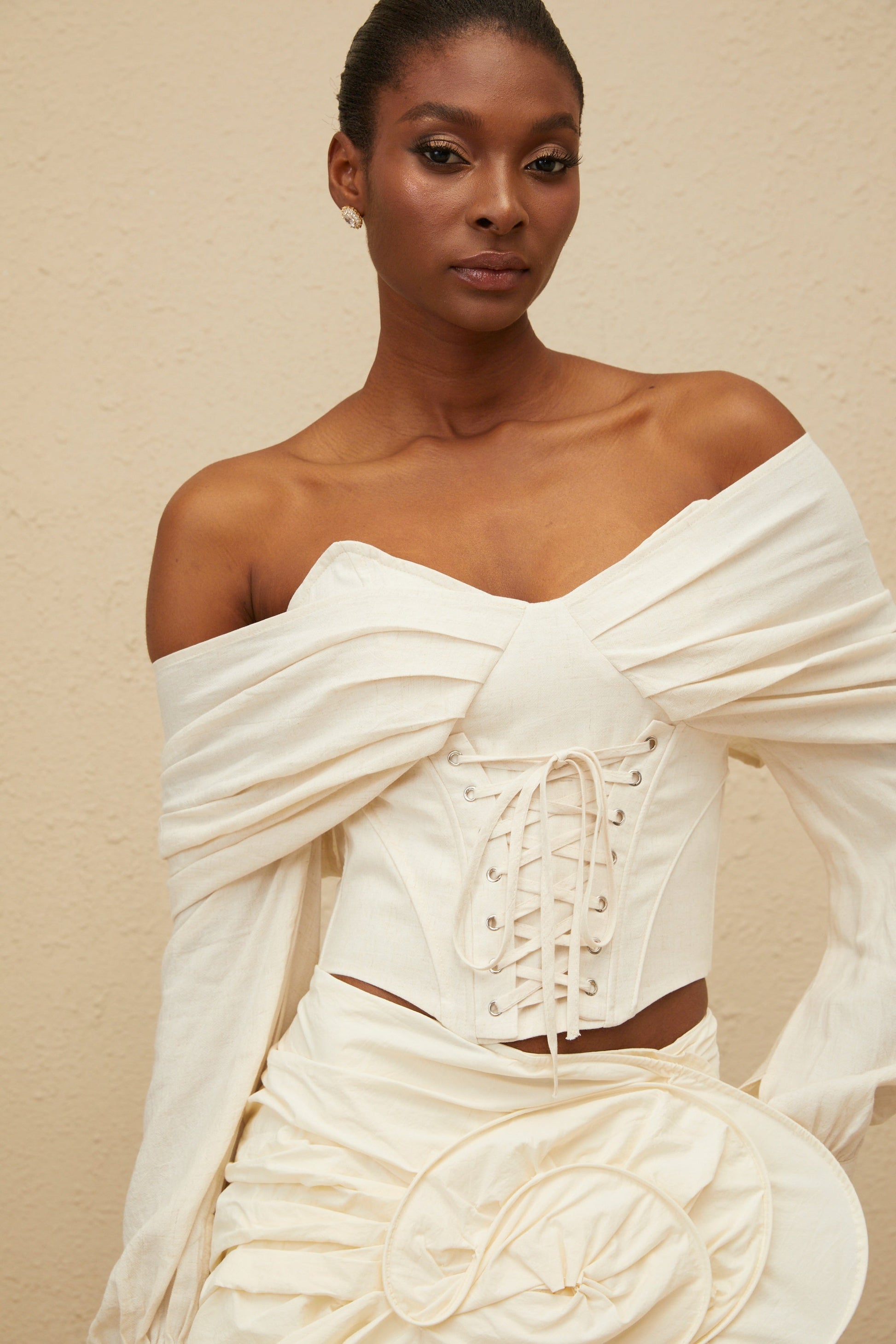 Éclatante Off-Shoulder Lace-Up Crop Top