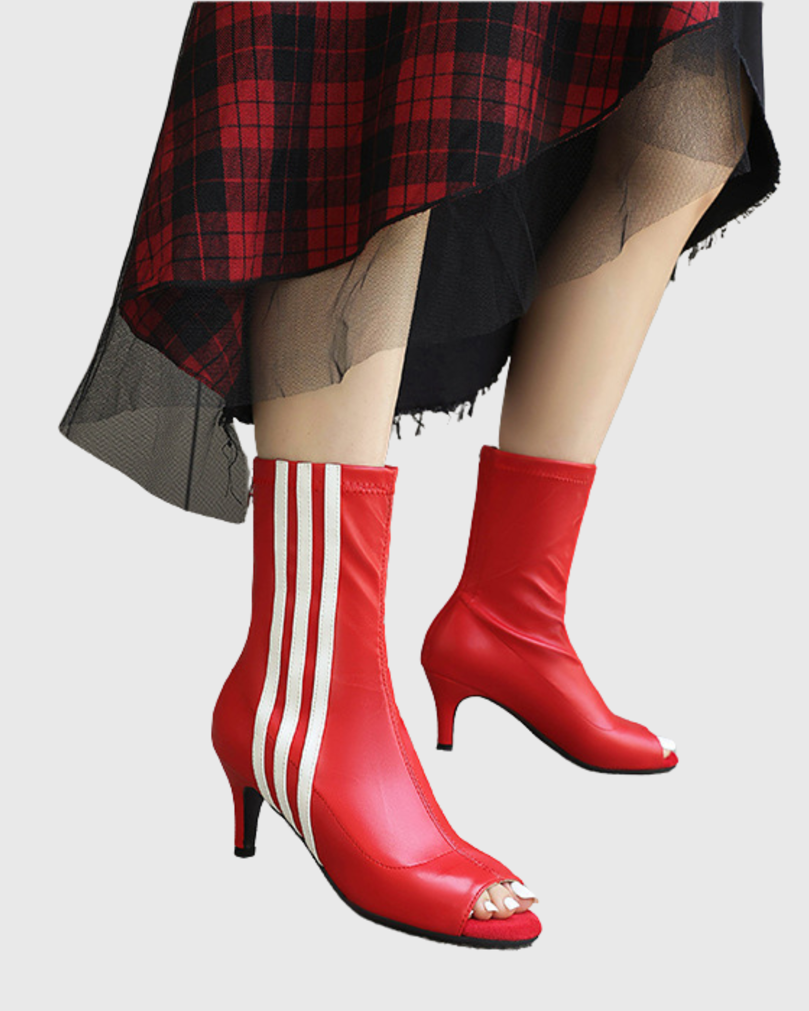 Editta Stripe Fish Mouth Ankle Boots In Red