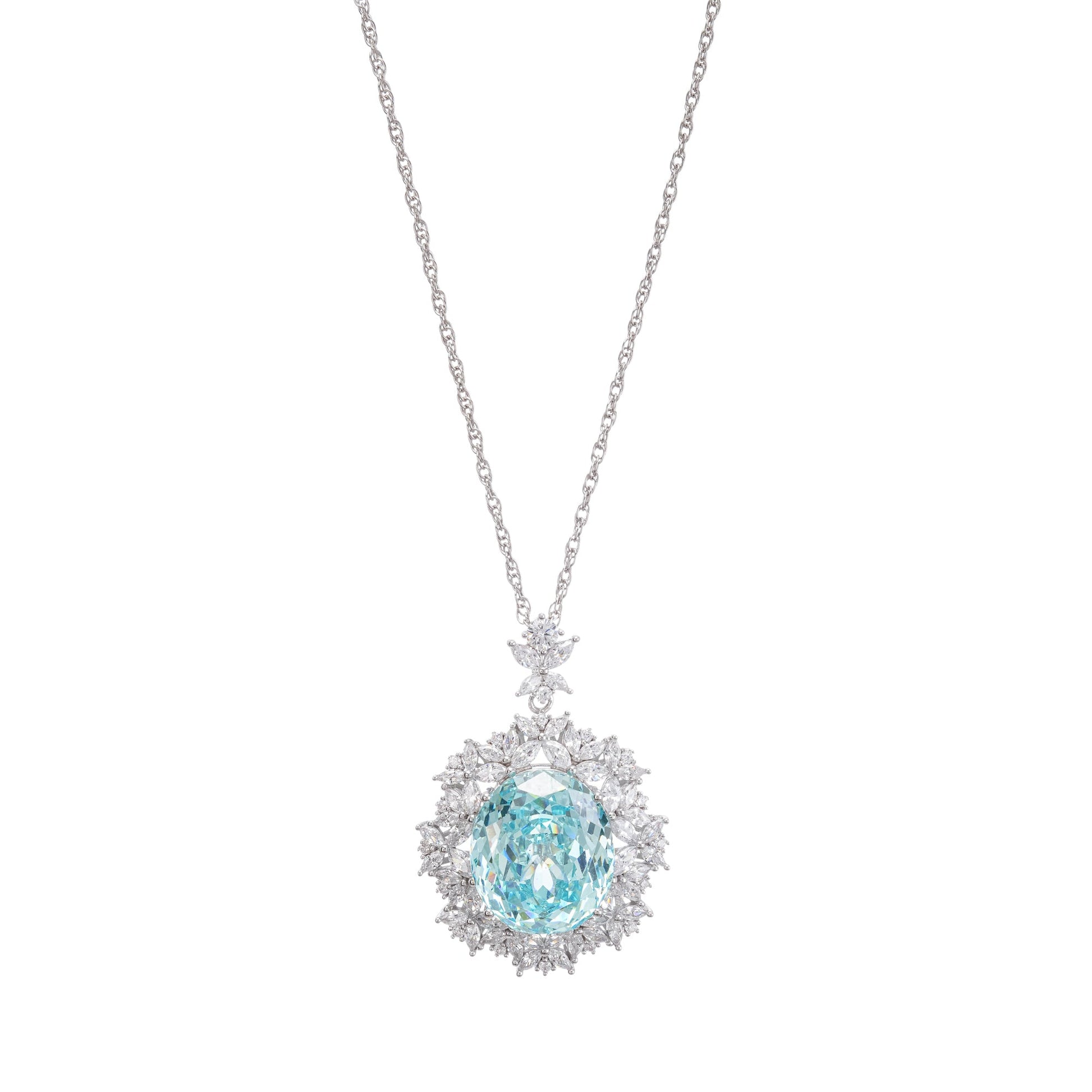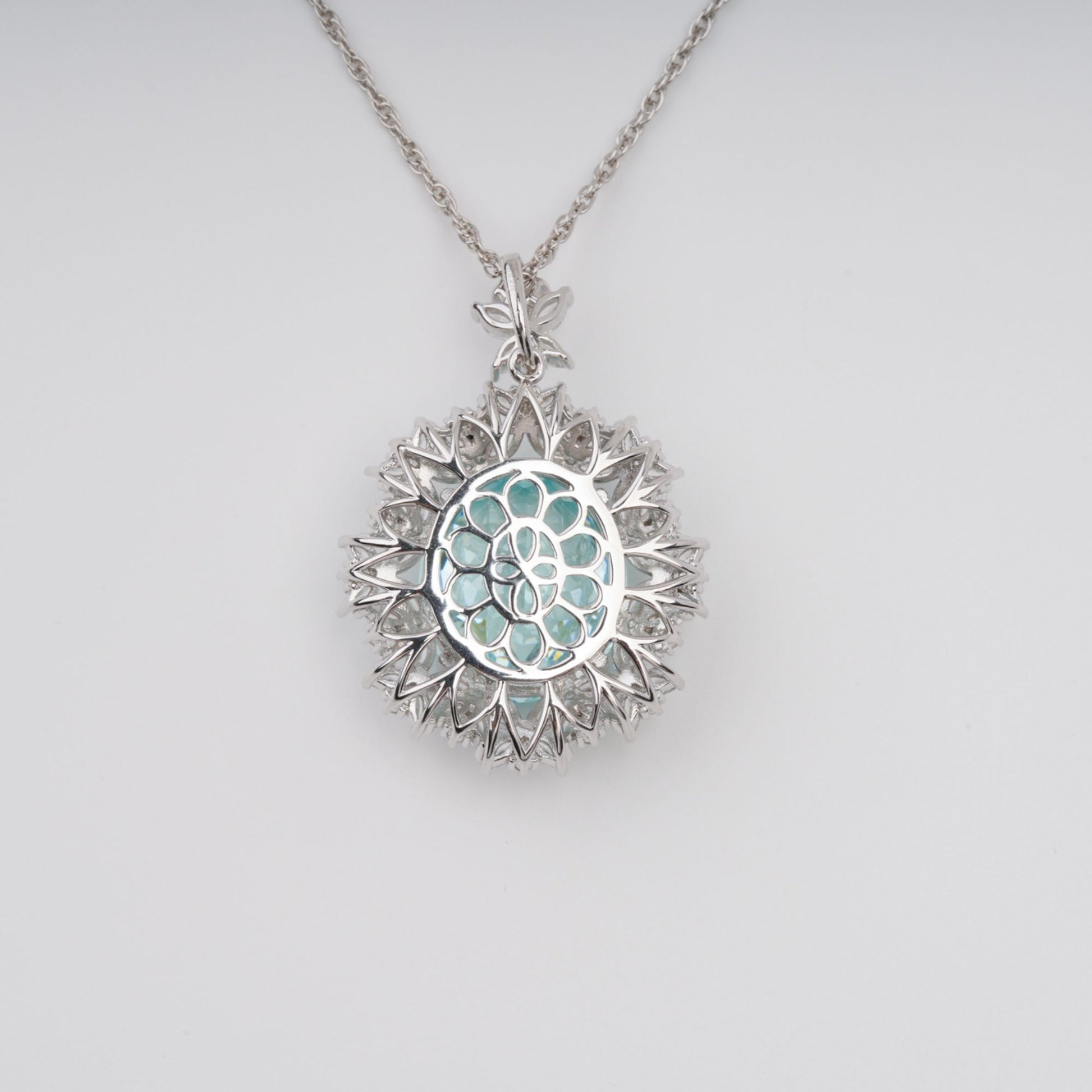 Eini Aquamarine Floral Gemstone Pendant Sterling Silver Necklace