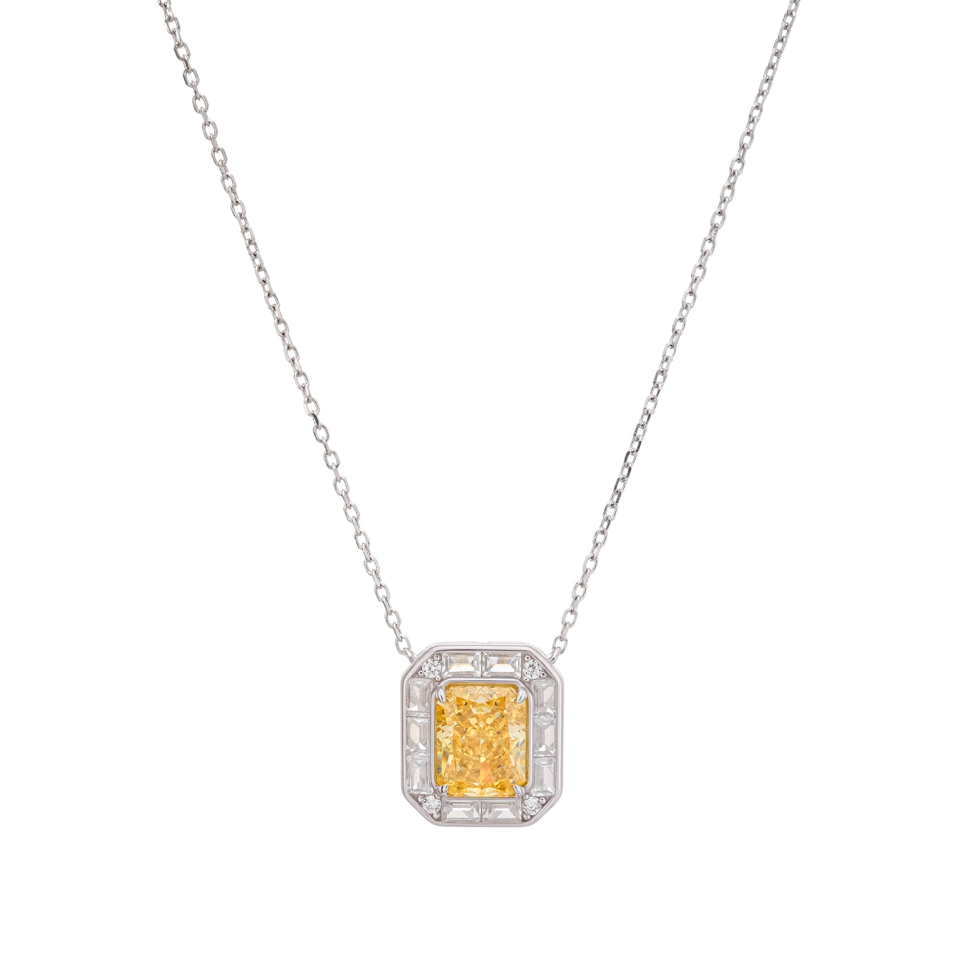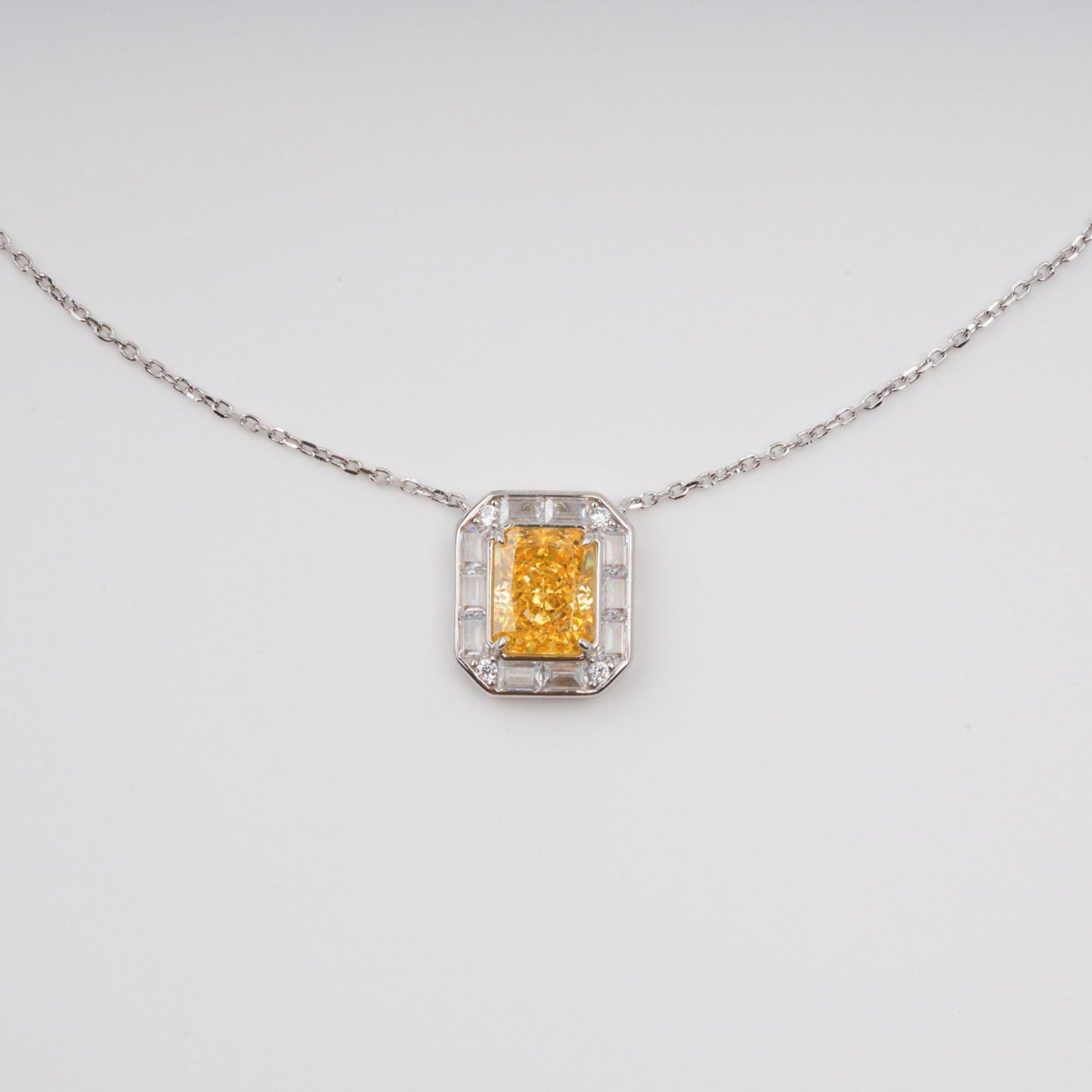 Eini Yellow Square Gemstone Pendant Sterling Silver Necklace