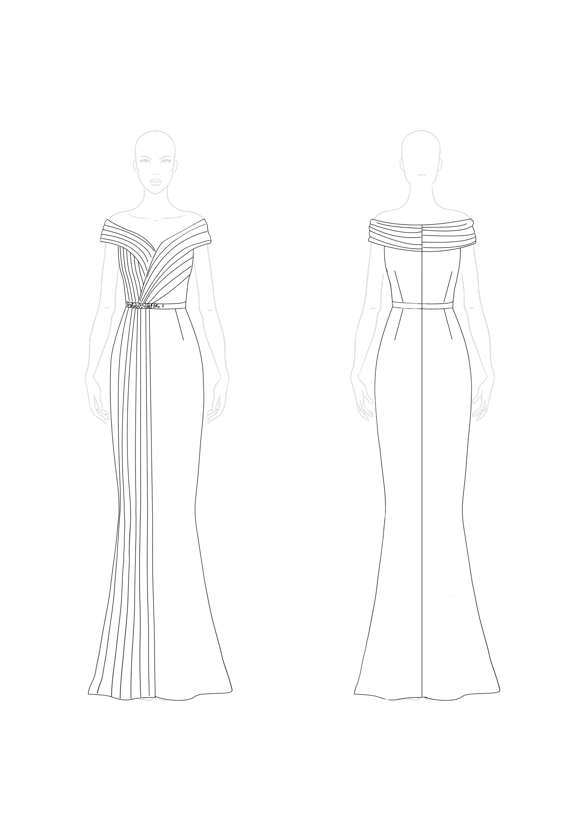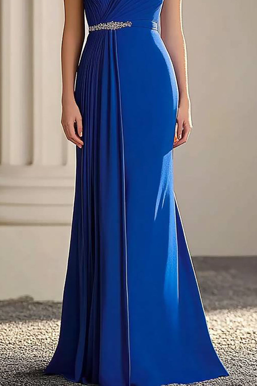 Graceful and refined, this off-shoulder blue dress is designed for elegance. The pleated waist detail highlights the figure, while the floor-length silhouette ensures a sophisticated presence. Ideal for formal events where effortless beauty is key.
