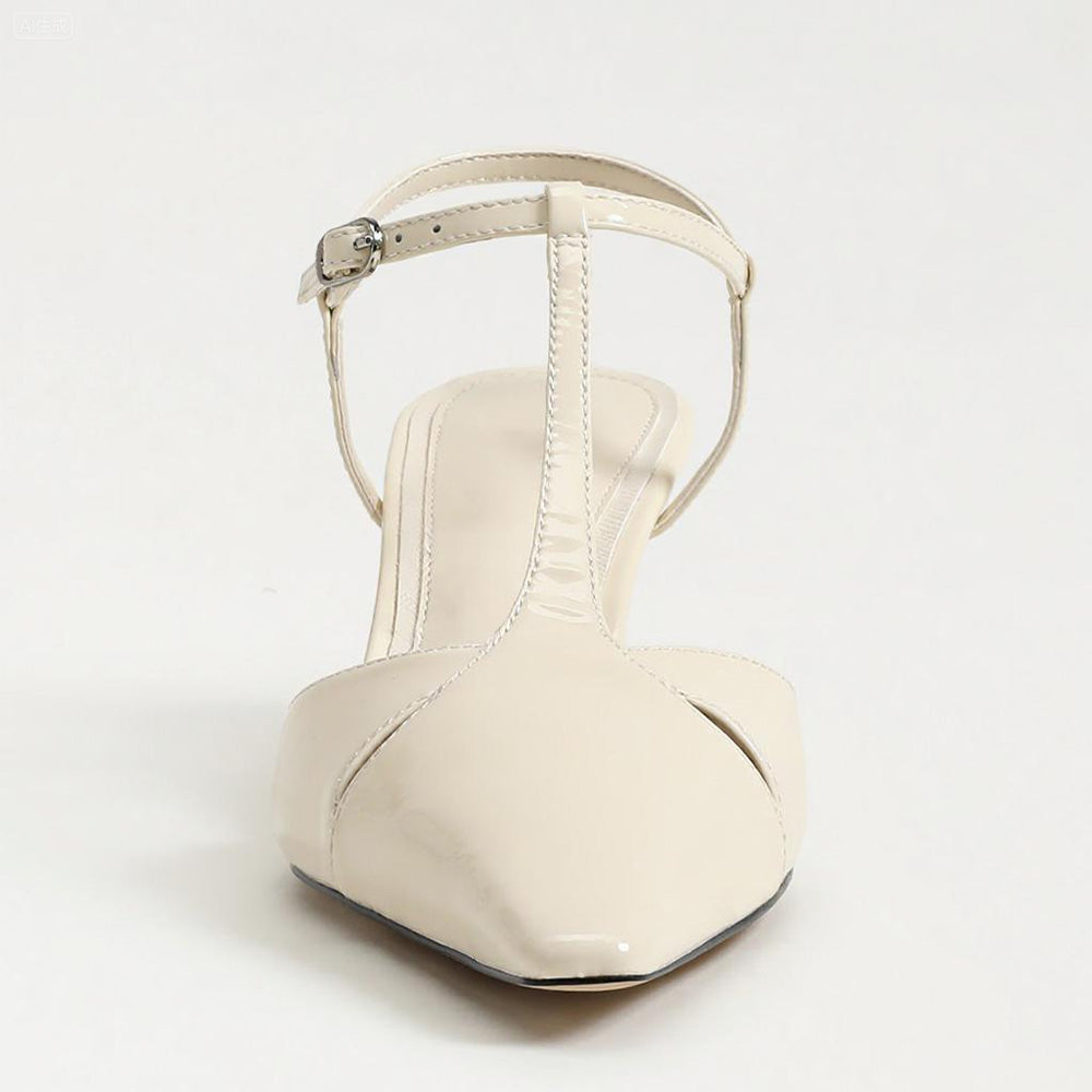 Elegant Ivory Pointed Toe T-Strap Chunky Heel Pumps for Women
