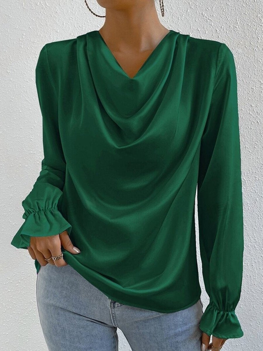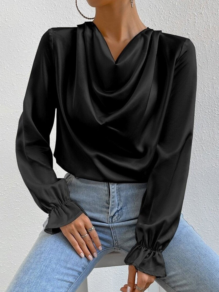 Bring sophistication and femininity to your wardrobe with the Elegant Ruffled Long Sleeve Satin Shirt. Crafted from luxurious satin, this shirt exudes timeless elegance with its soft, silky texture and delicate ruffled detailing. Designed for the modern woman who appreciates a blend of classic style and contemporary flair, this shirt is perfect for both professional settings and more formal events.