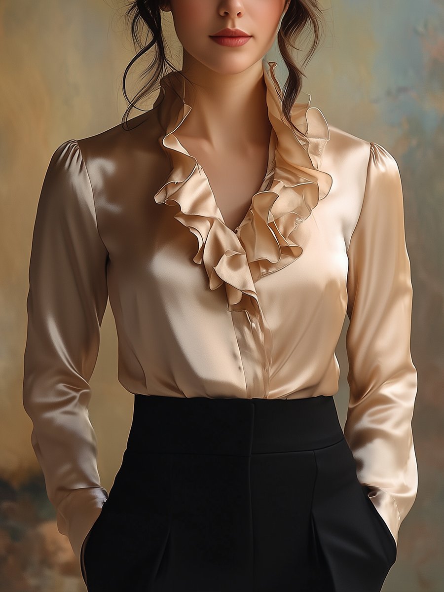 Elegant Satin Blouse with Romantic Ruffled Collar