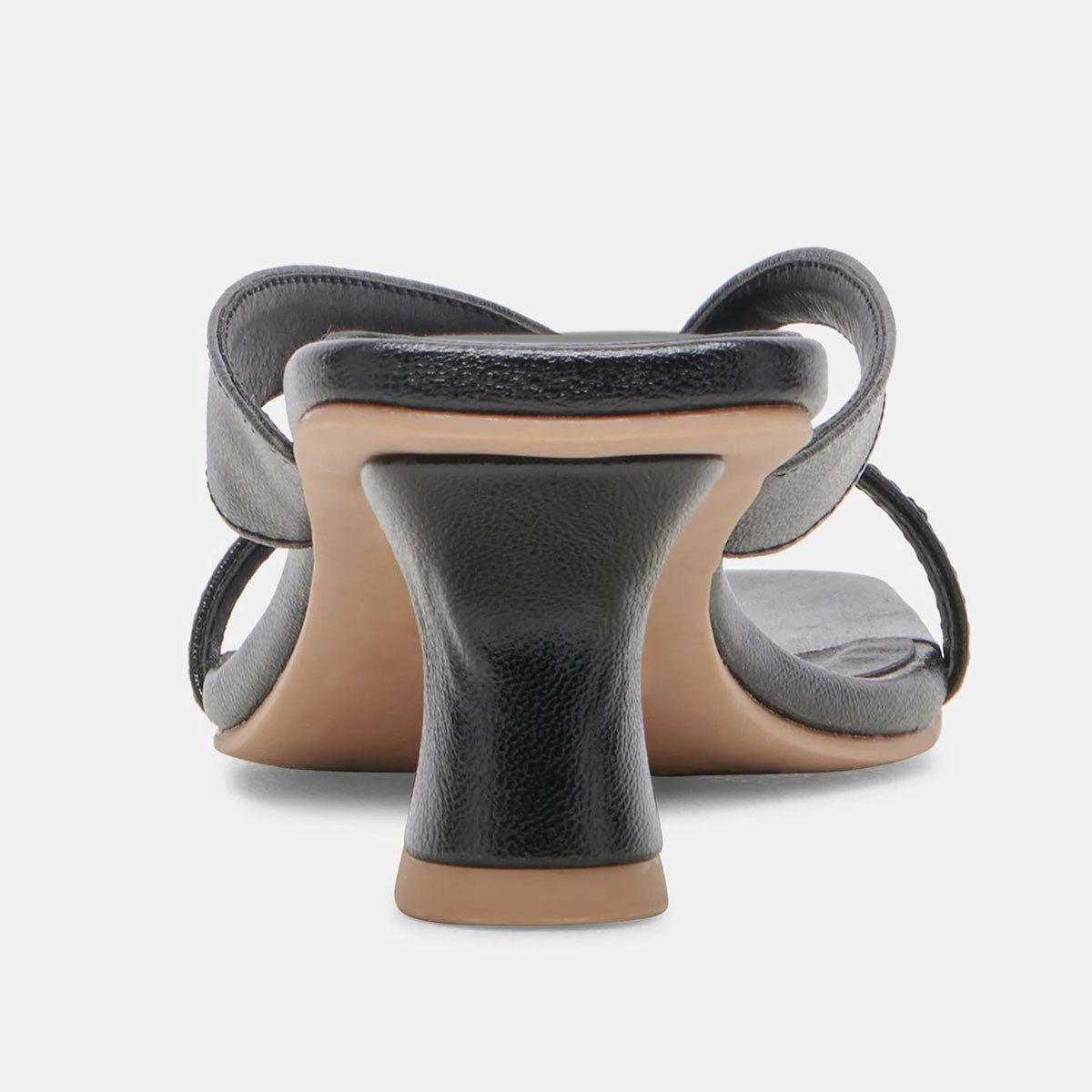 Elegant Square Toe Mid Heel Flip Flop Black Sandals for Women