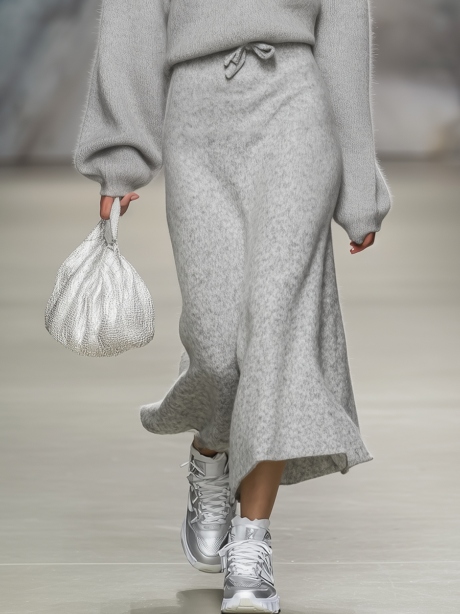The accompanying knitted skirt, often designed to complement the sweater in texture and color, typically offers a silhouette that can range from fitted to slightly A-line, enhancing the natural curves of the body without being restrictive. The mid-length of the skirt often creates a balanced look, suitable for various occasions. For a complete chic outfit, this set can be paired with ankle boots or heeled pumps, adding a touch of sophistication. You might accessorize with a statement belt to define the waist or with a delicate necklace that follows the line of the V-neck. A structured handbag or a clutch can complete the ensemble, making this elegant sweater and skirt set a versatile and stylish addition to any wardrobe, perfect for transitioning seamlessly from day to night.