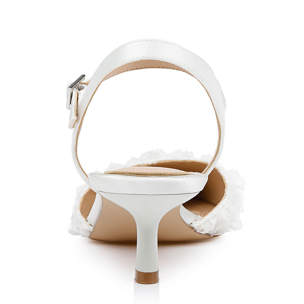 Elegant White Lace Rose Pointed Toe Ankle Strap Wedding Heels
