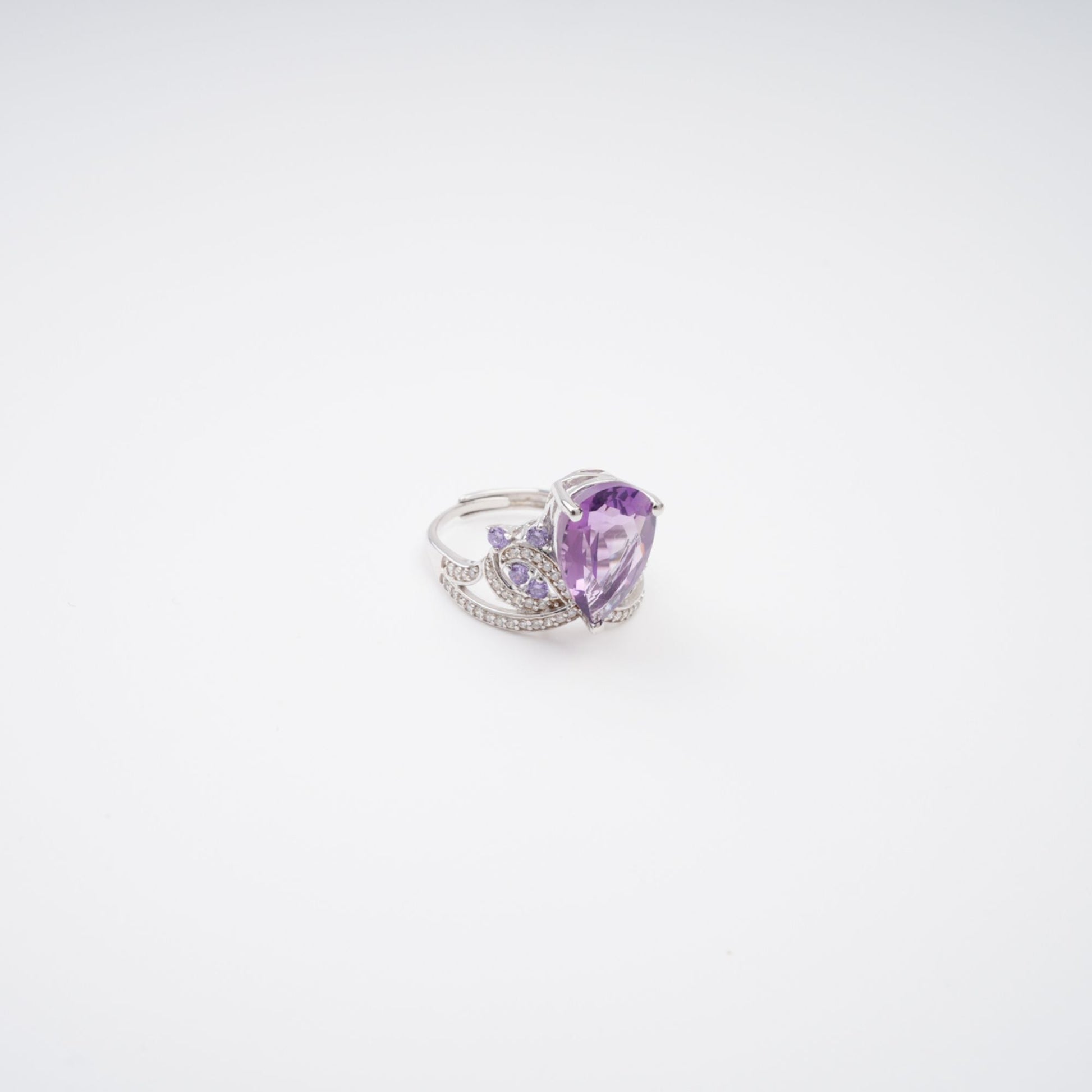 Eléonore Purple Pear Cut Gemstone Sterling Silver Adjustable Ring