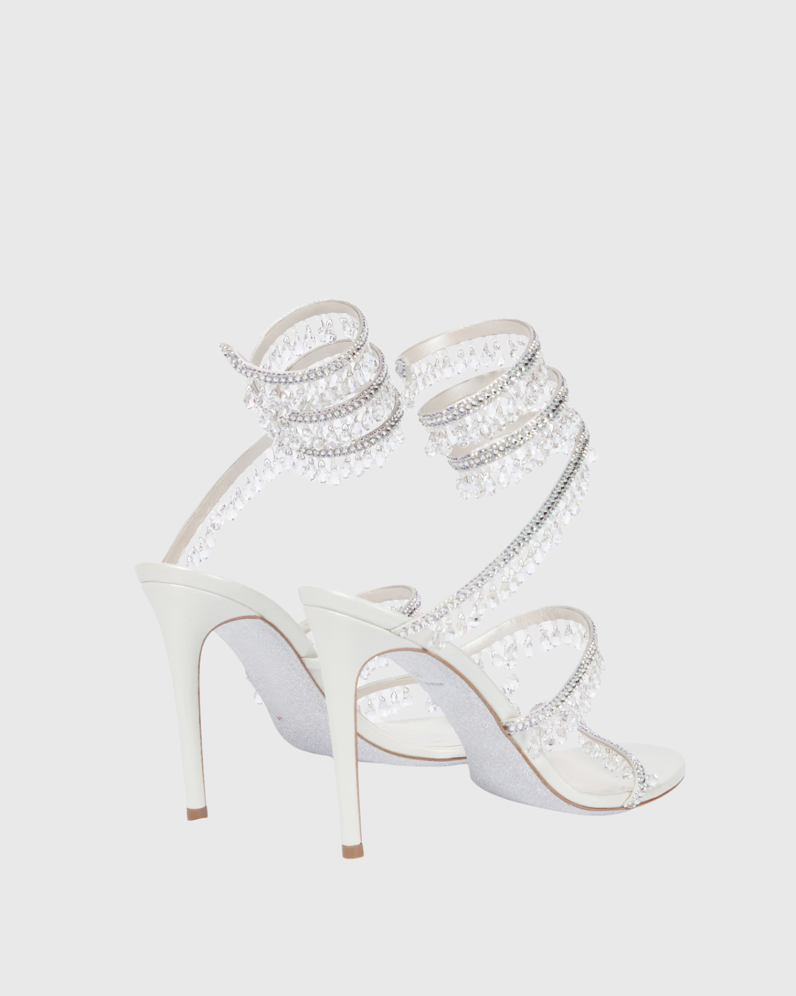 Step into elegance with the Elisa Diamond Fringe Snake Sandals in White. Featuring a chic snake pattern and sparkling diamond fringe, these sandals add a touch of luxury to any outfit. Their sleek design offers both style and comfort, perfect for making a statement at special occasions or elevating your everyday look. Embrace sophistication and shine with every step.
