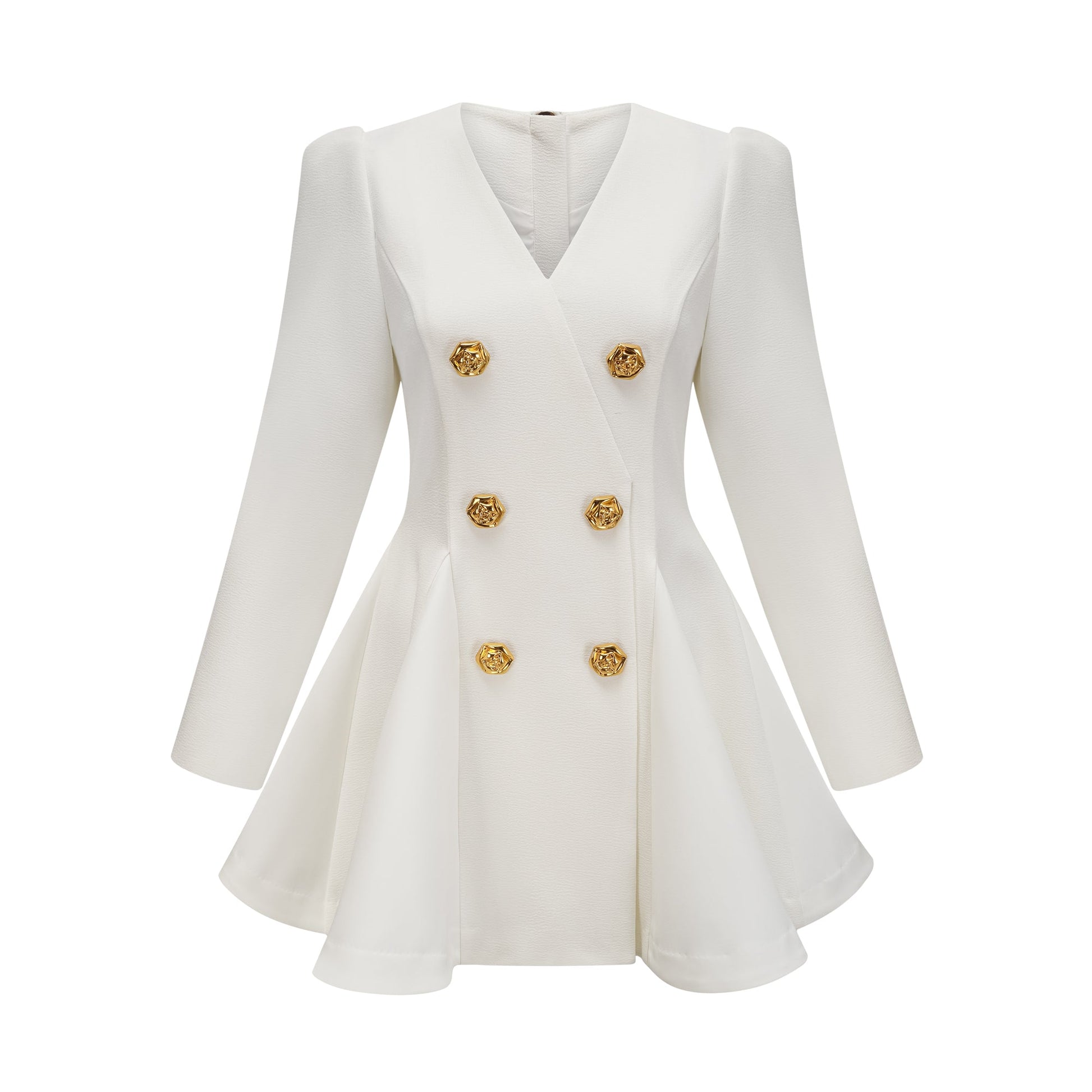 Élise pleated peplum-hem blazer dress in White