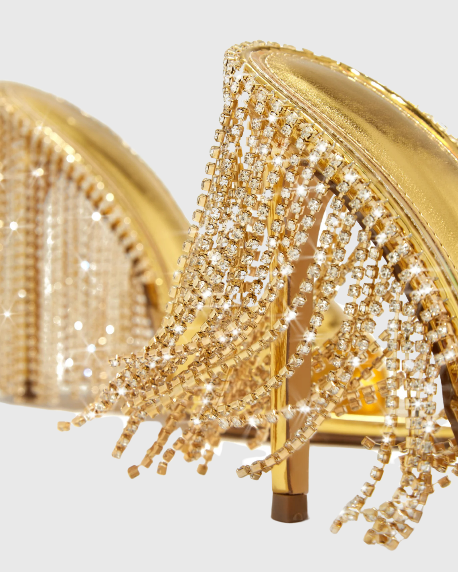 Indulge in luxury with our Ellie Diamond Fringe Metallic Slippers! These glamorous slippers feature a diamond fringe design and a metallic sheen that will elevate any outfit. With their comfortable fit and elegant style, you'll feel like royalty every time you slip them on. Perfect for adding a touch of sparkle to your everyday look or dressing up for a special occasion. Treat yourself and step into the world of luxury with our Ellie Diamond Fringe Metallic Slippers!