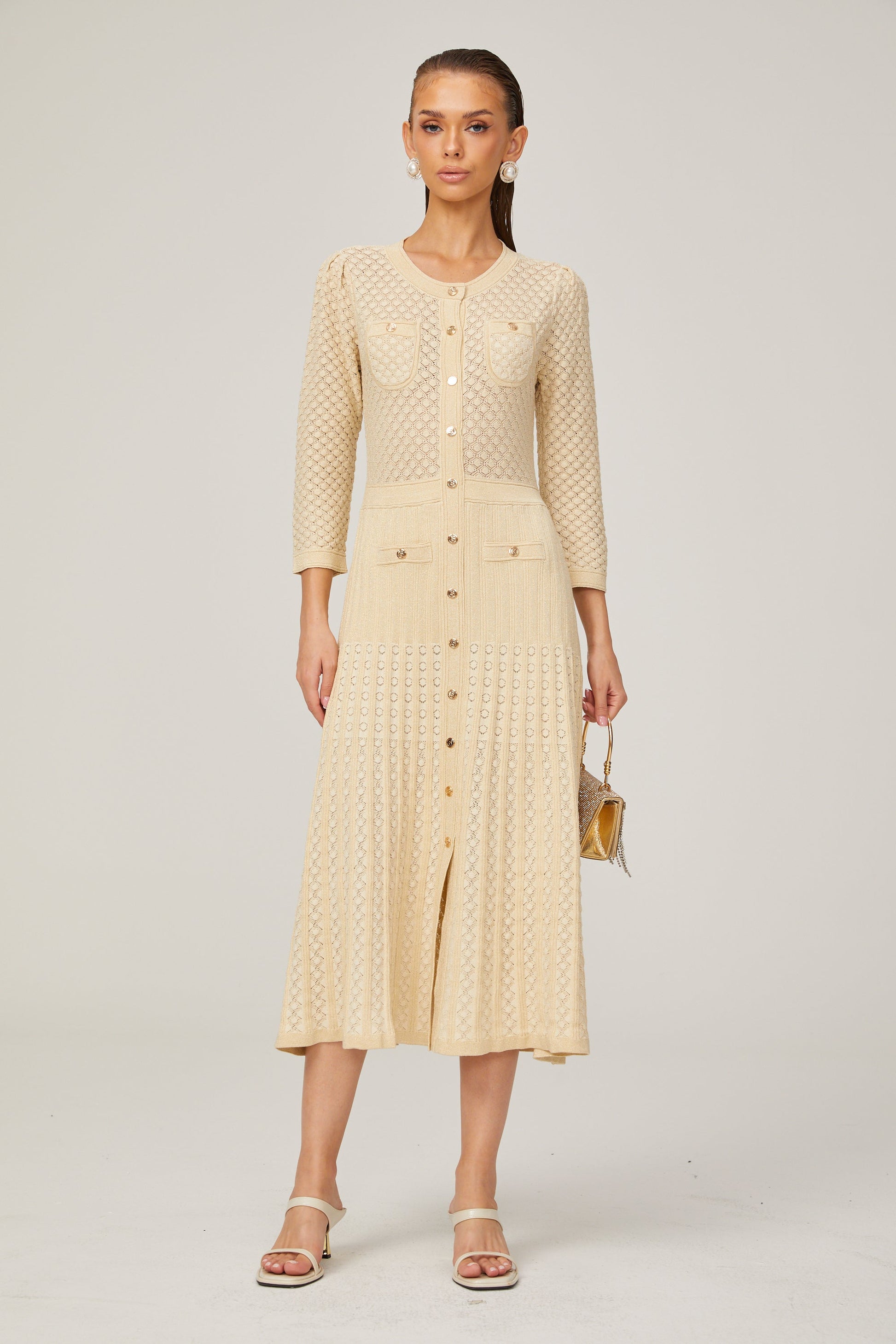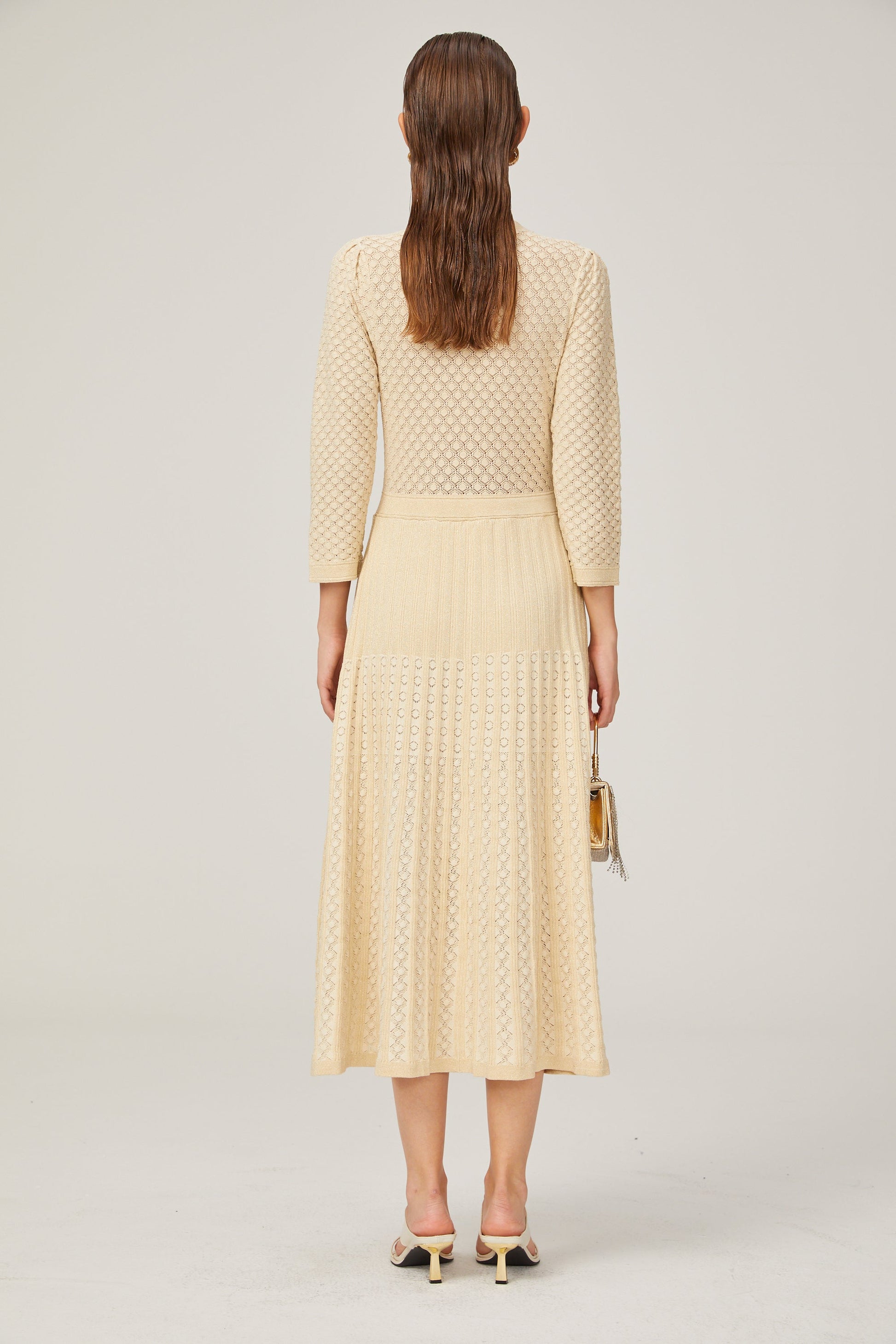 Élodie knitted long-sleeve midi dress in Neutrals
