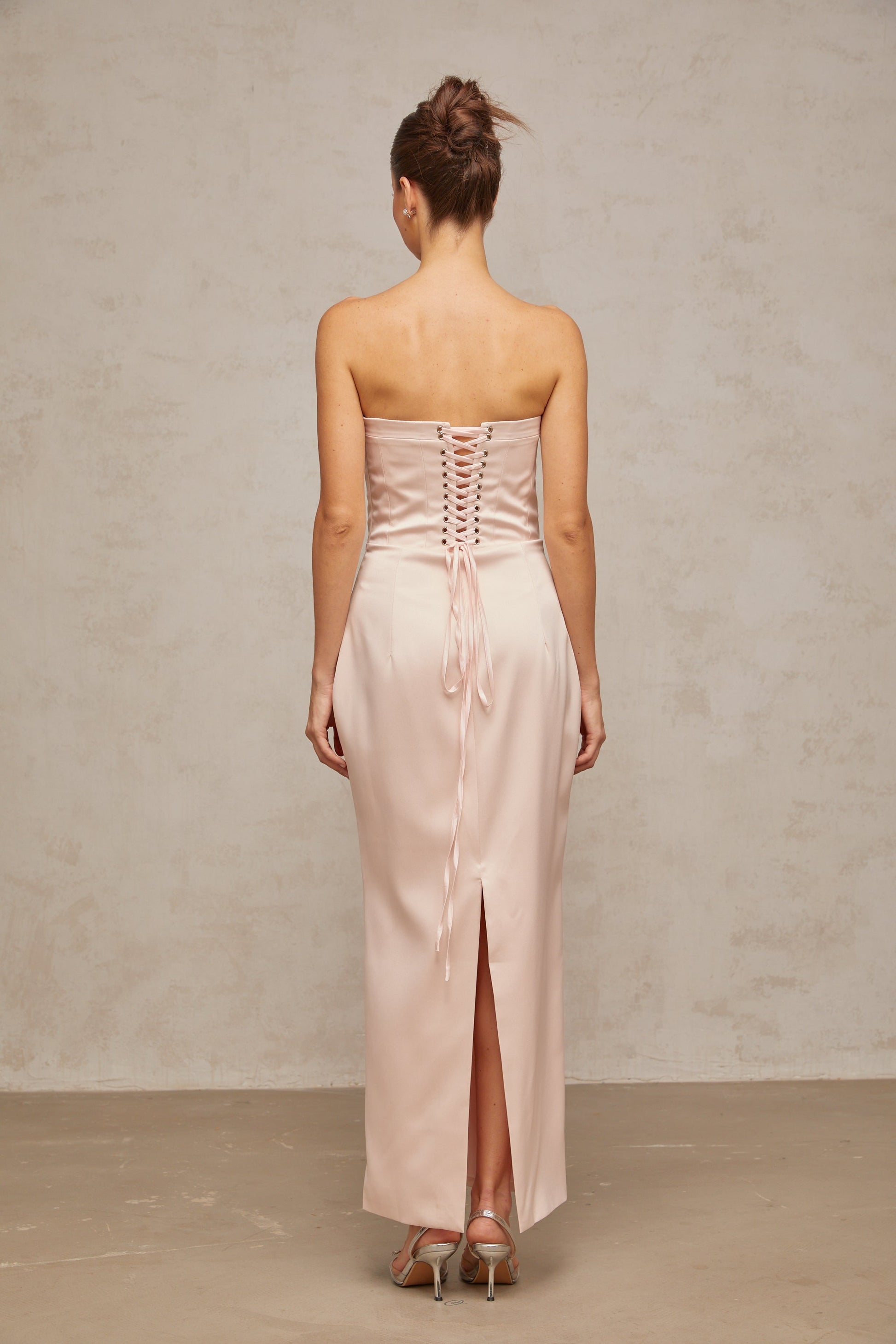 Élodie pink off-shoulder corset satin maxi dress
