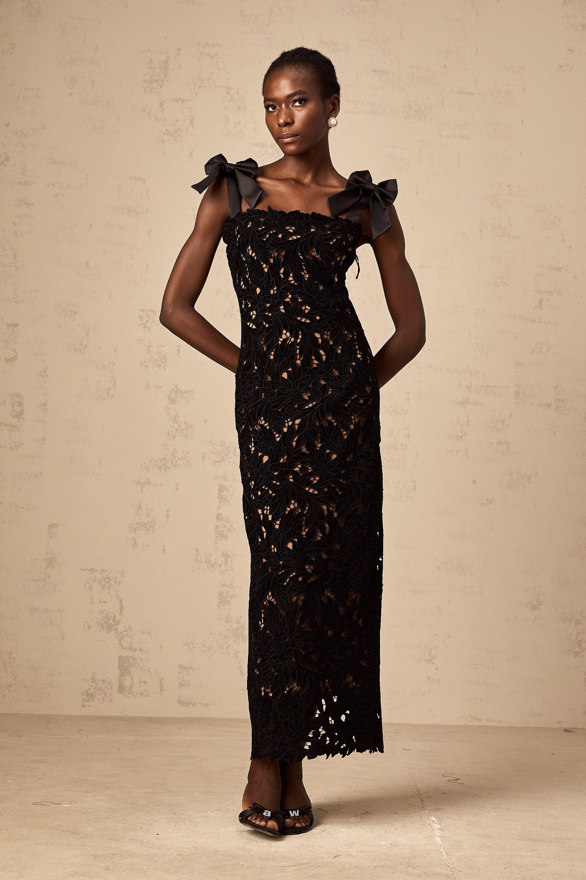 Eloise black floral embroidered maxi dress