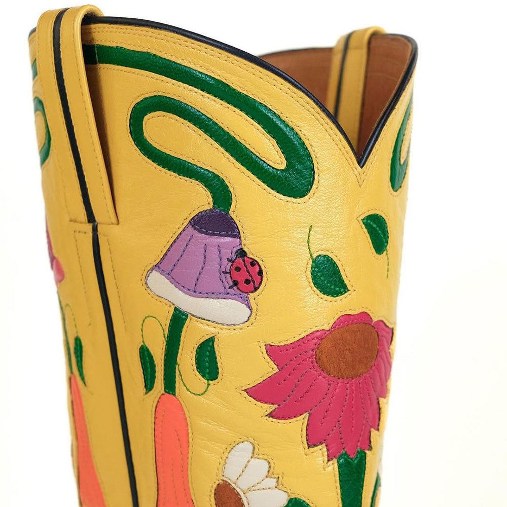 Embroidered Pointed Toe Black & Yellow Cowgirl Booties for Women