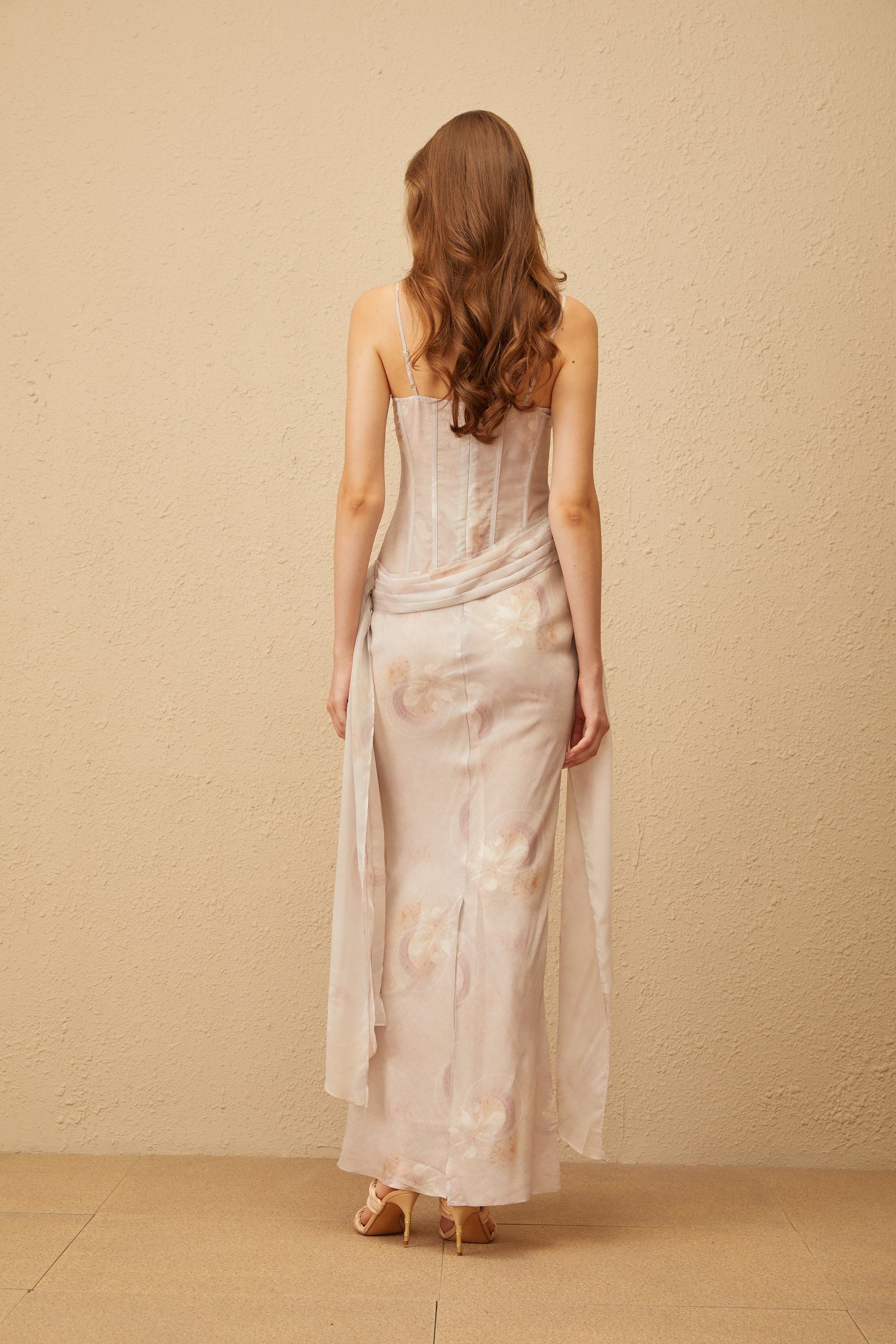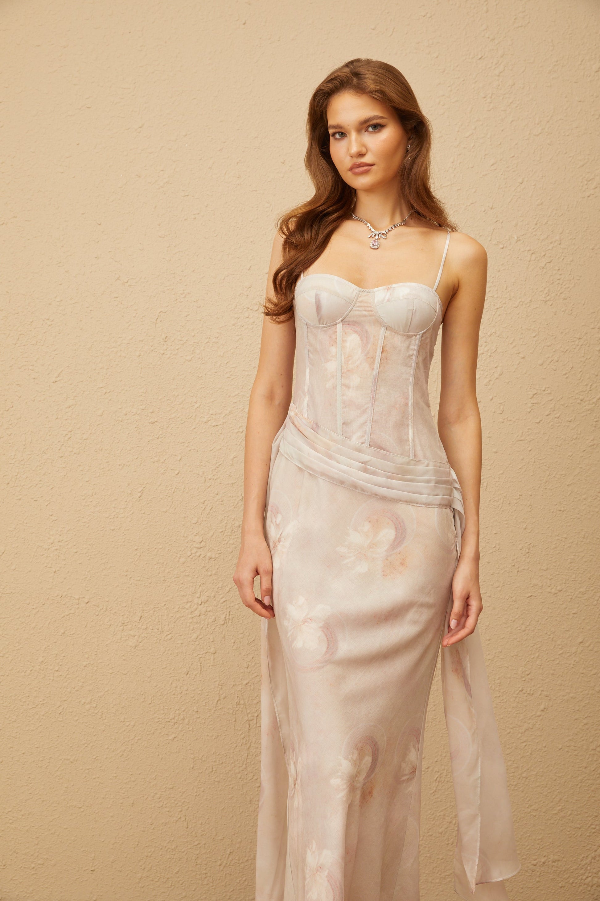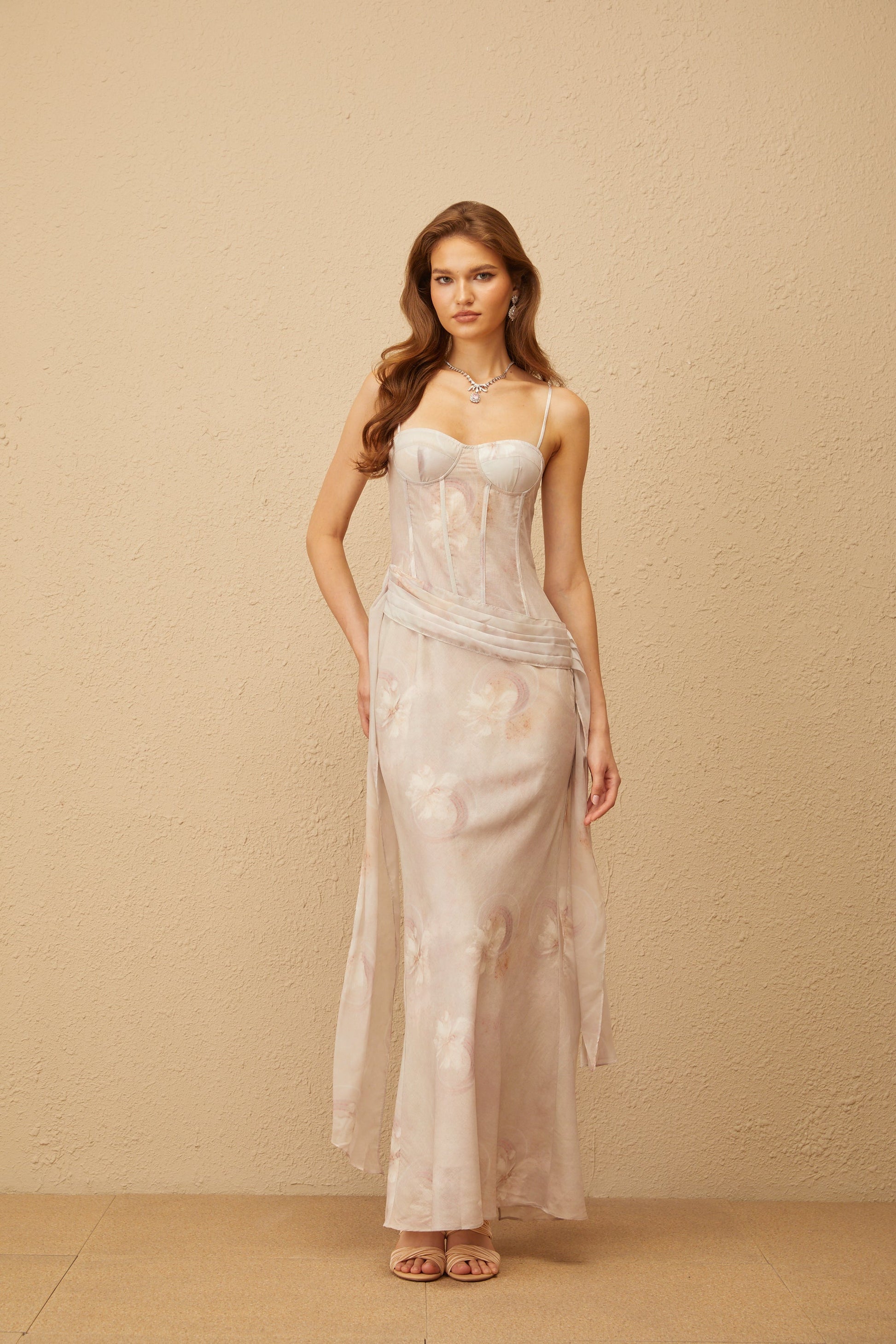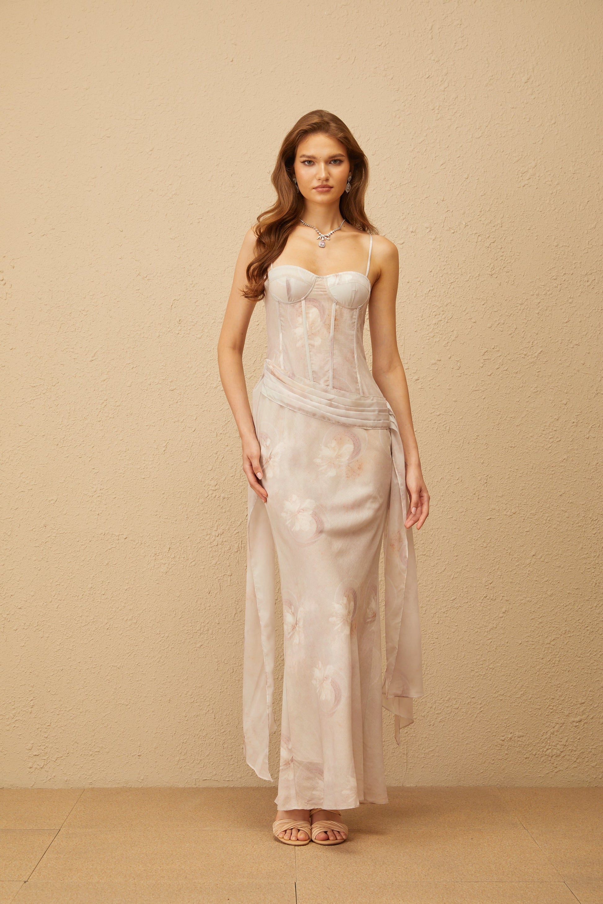 Emeline Grey Floral Print Corset Maxi Dress