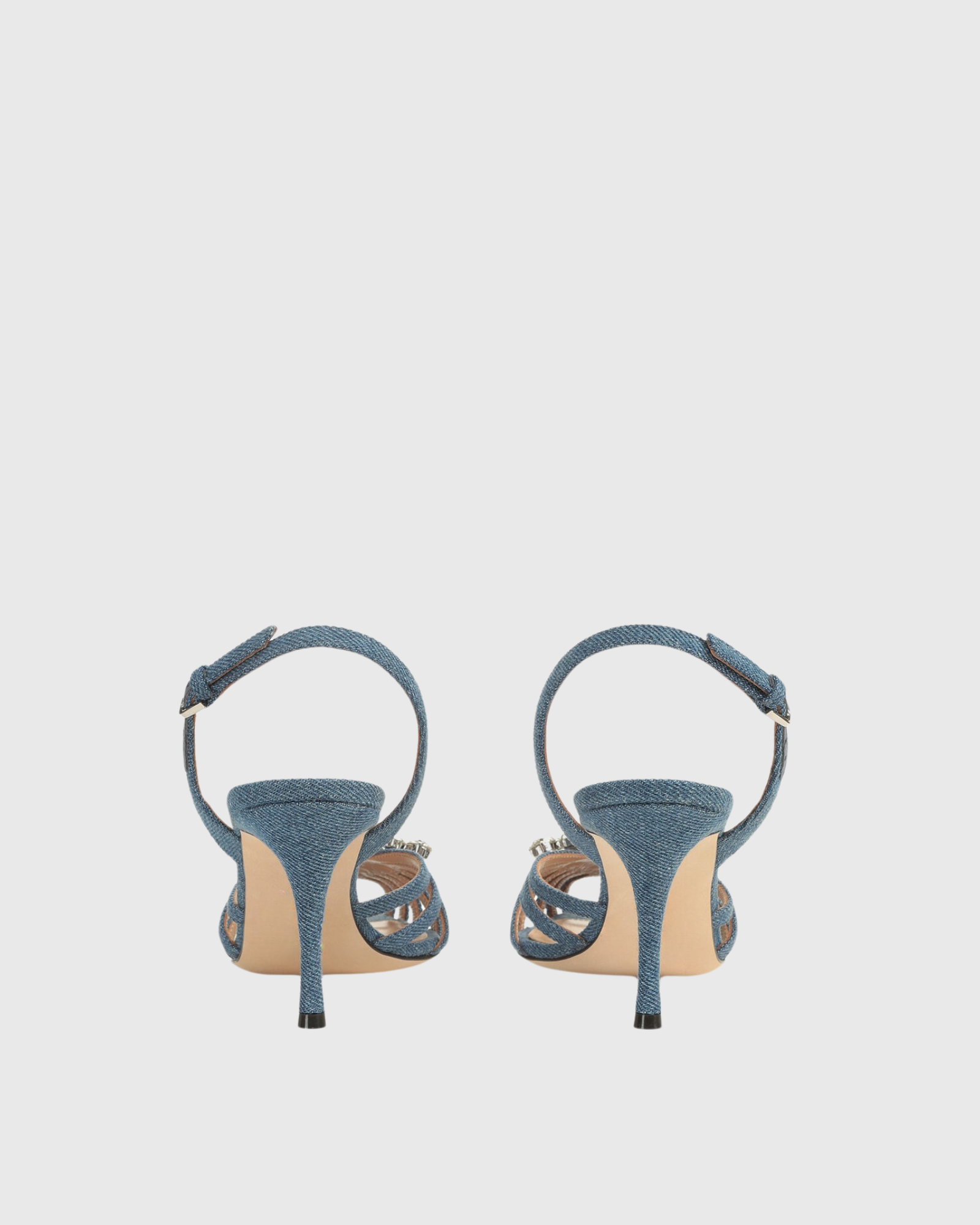 Emilee Diamond Triangle Slingback Cage Sandals In Denim Blue