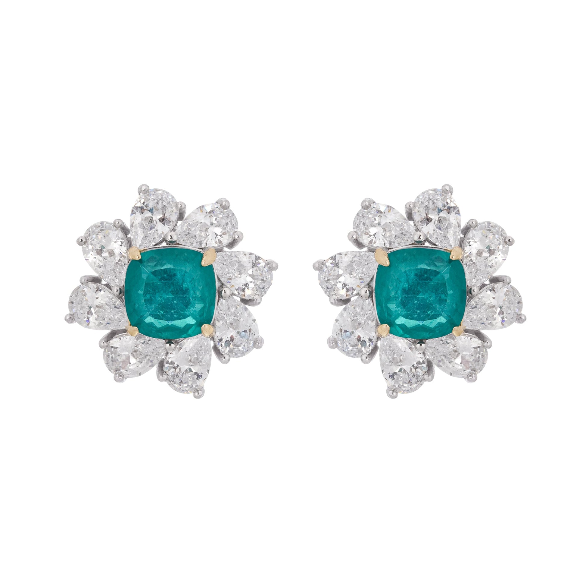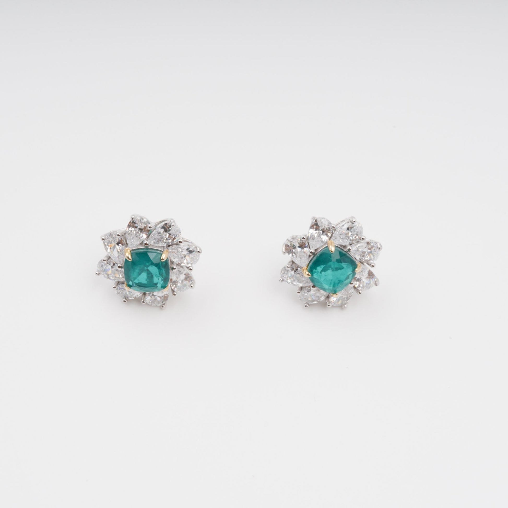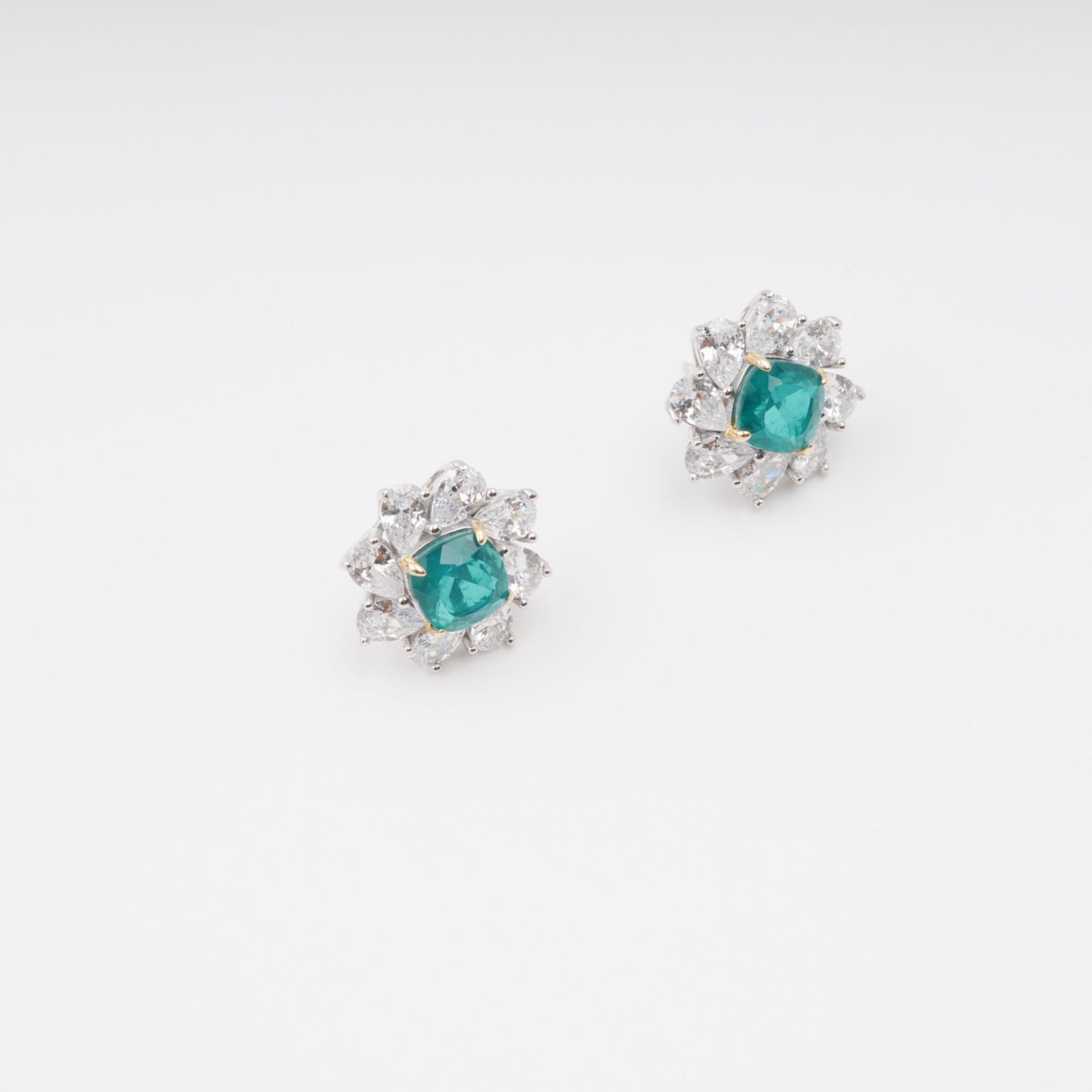 Erica Green Flower Shaped Gemstone Sterling Silver Earrings