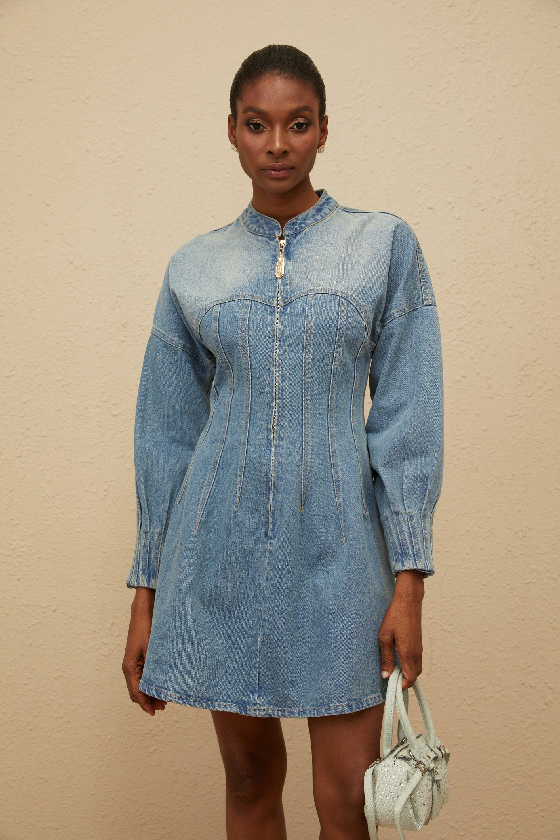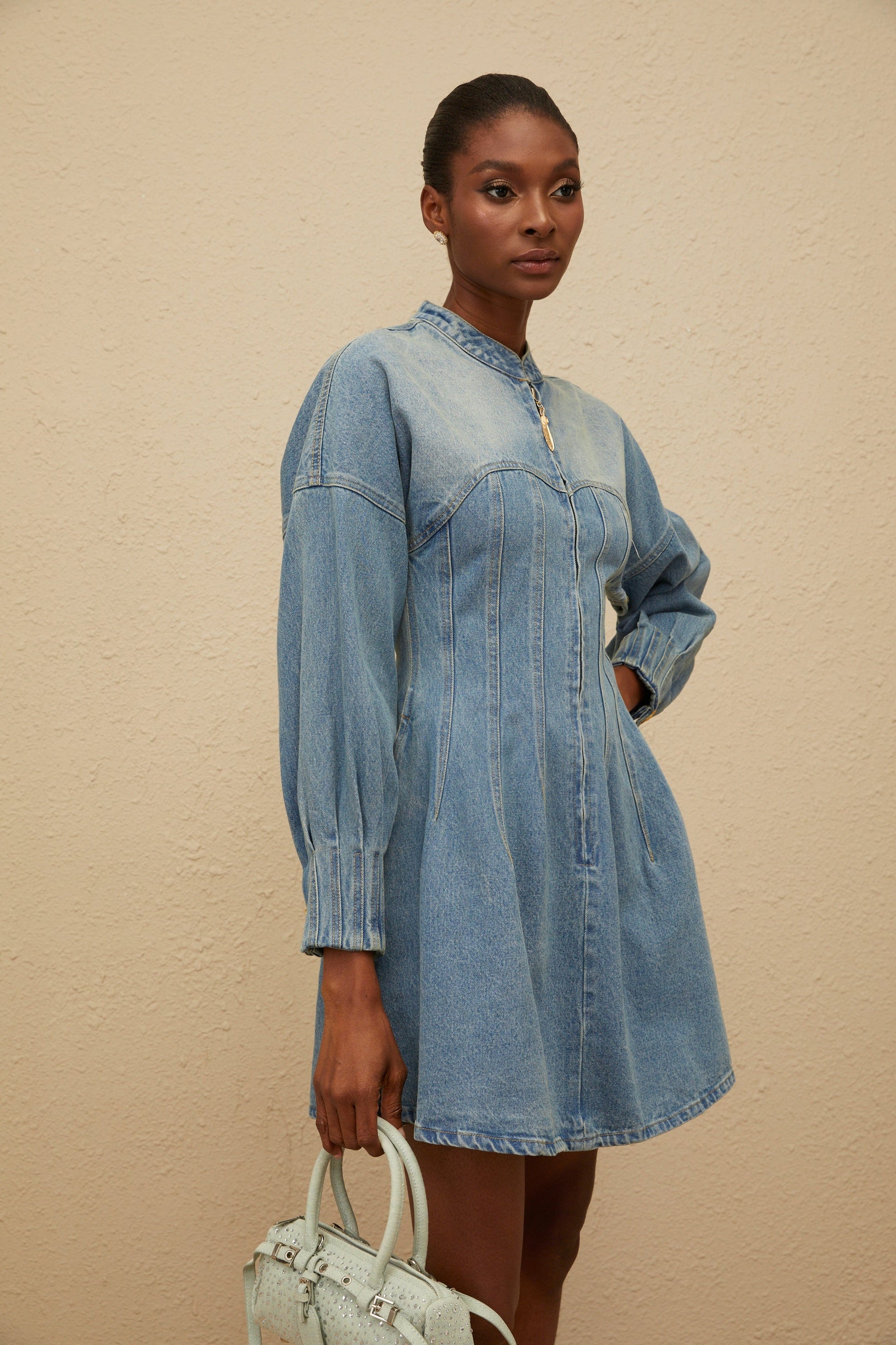 Esme Blue Flared Denim Mini Dress