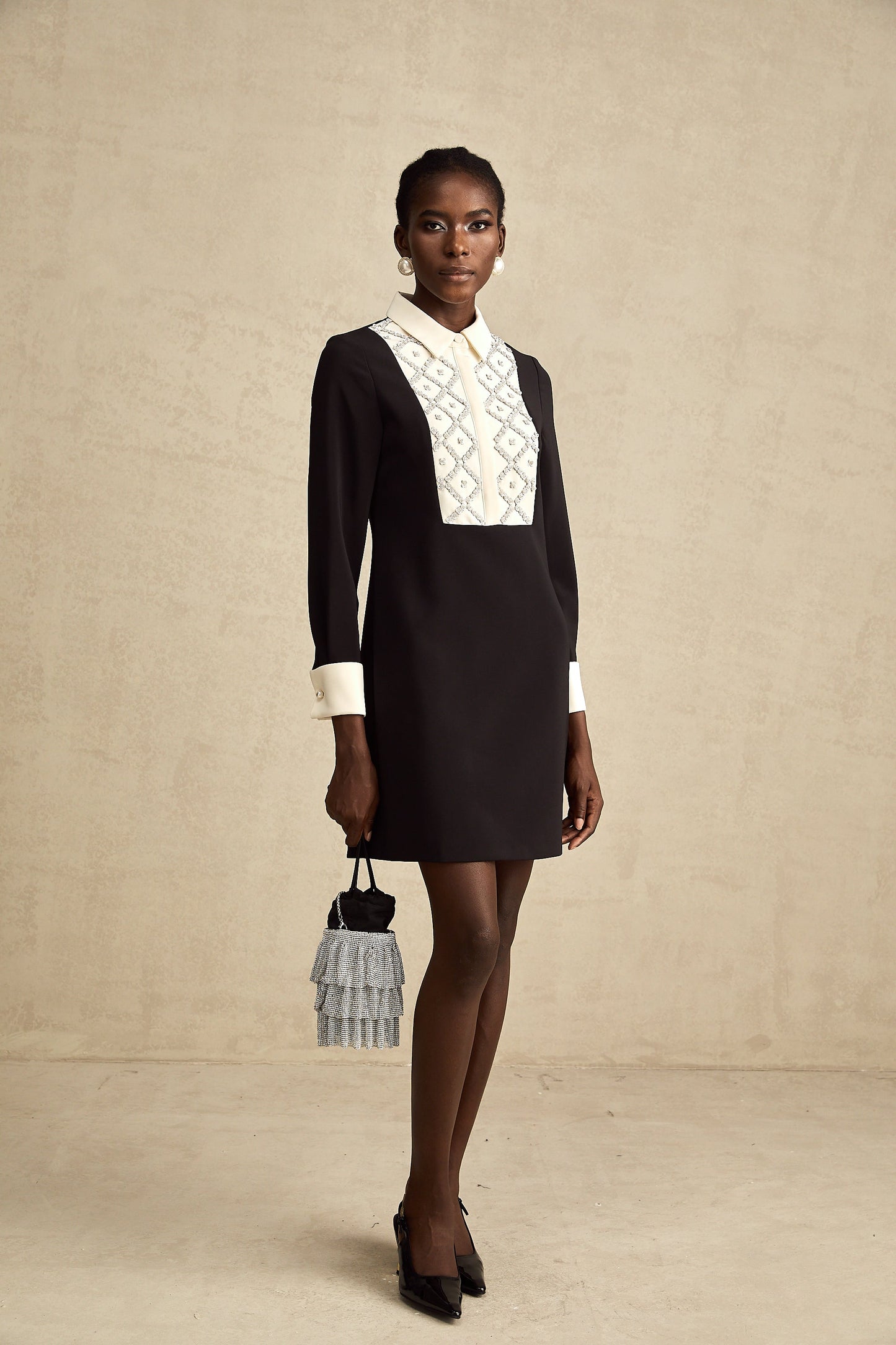 Esmée contrast-color embellished mini dress