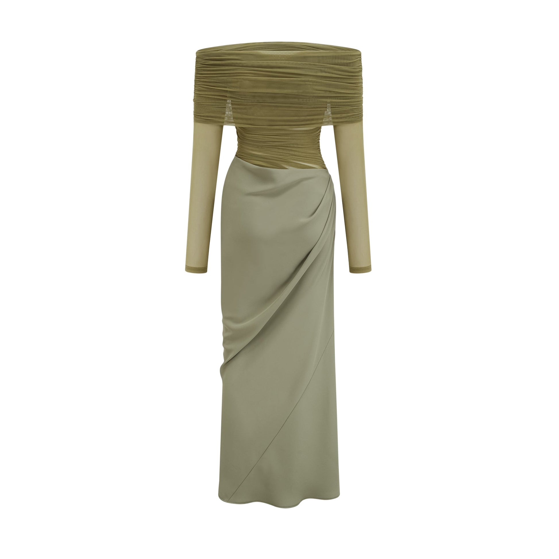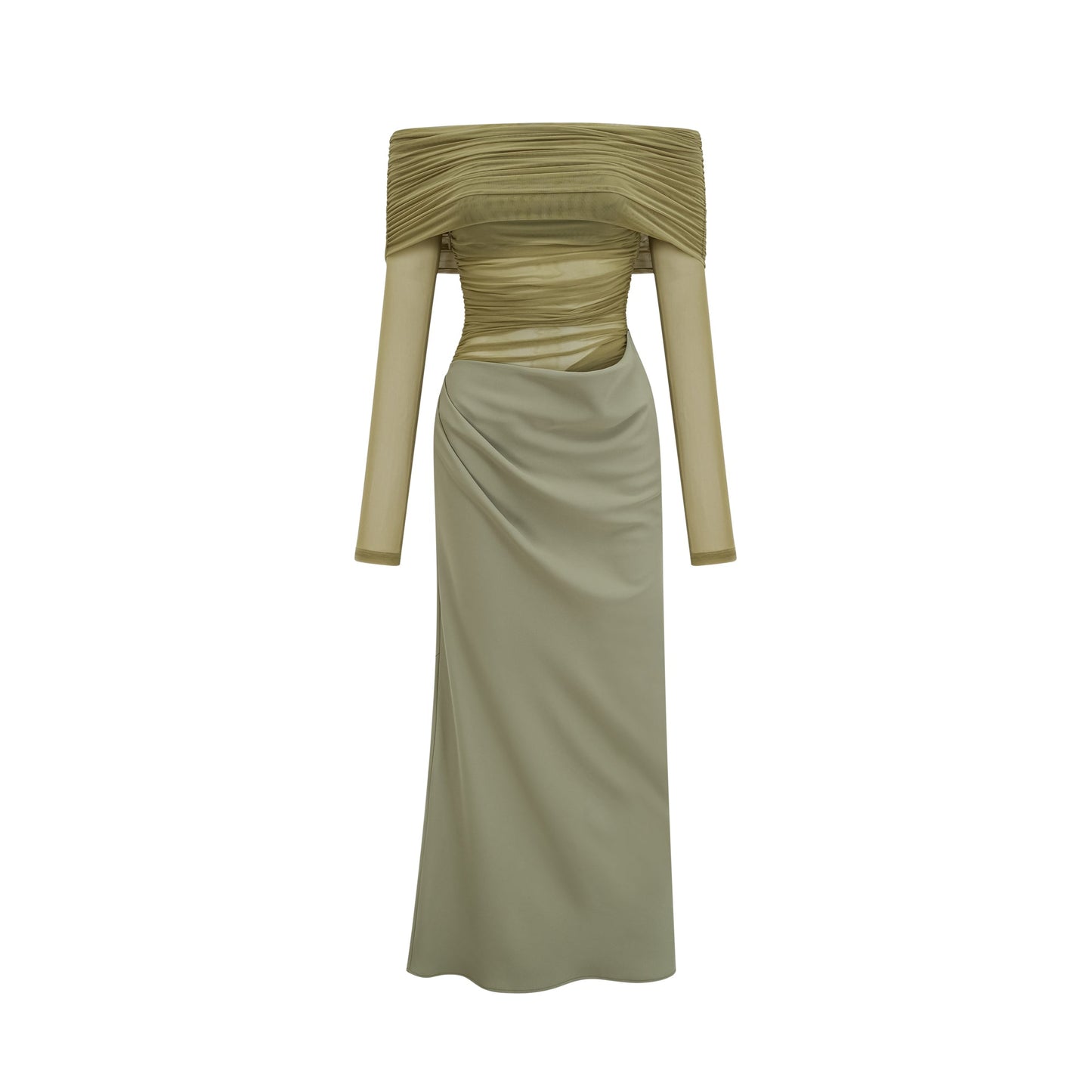 Estelle off-shoulder semi-sheer midi dress in Green