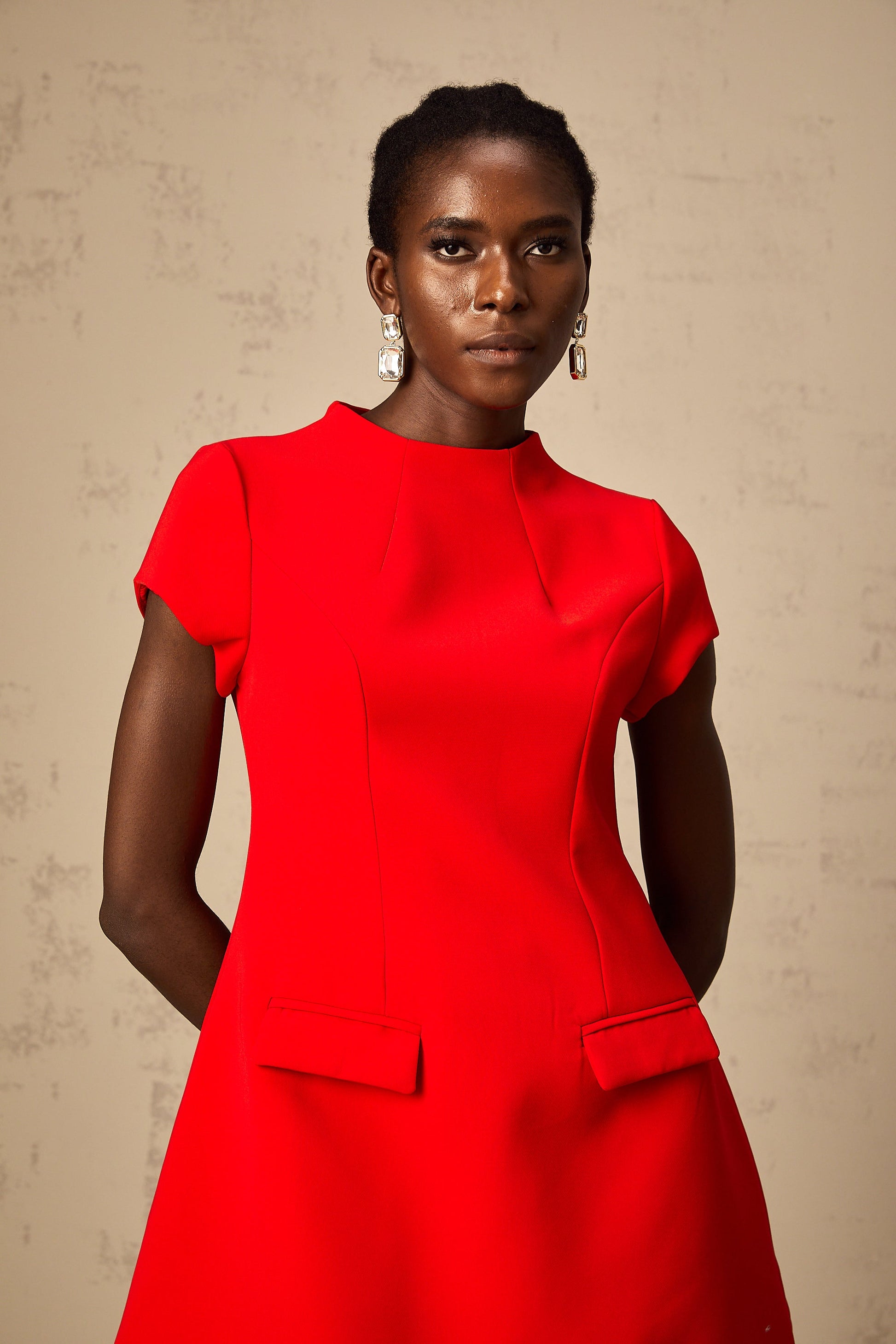 Esther red cap-sleeve mini dress