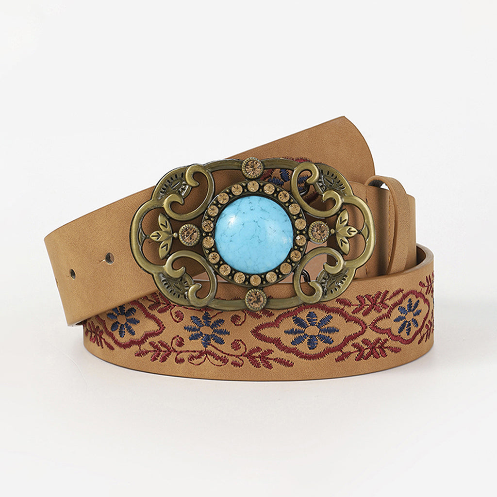 Ethnic Floral Leaf Pattern Embroidered Buckle Belt