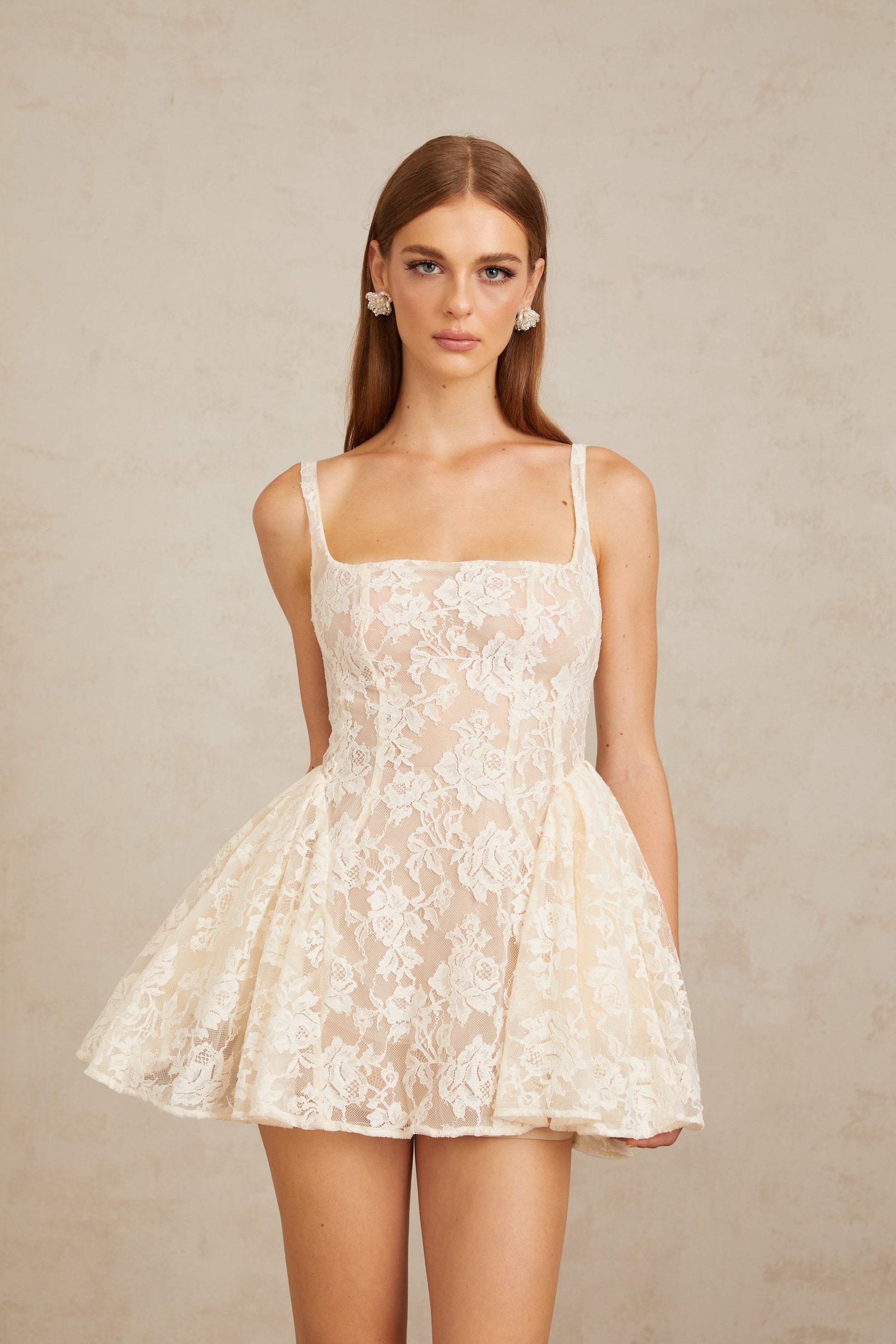 Euphemia Cream White Floral Lace Mini Dress