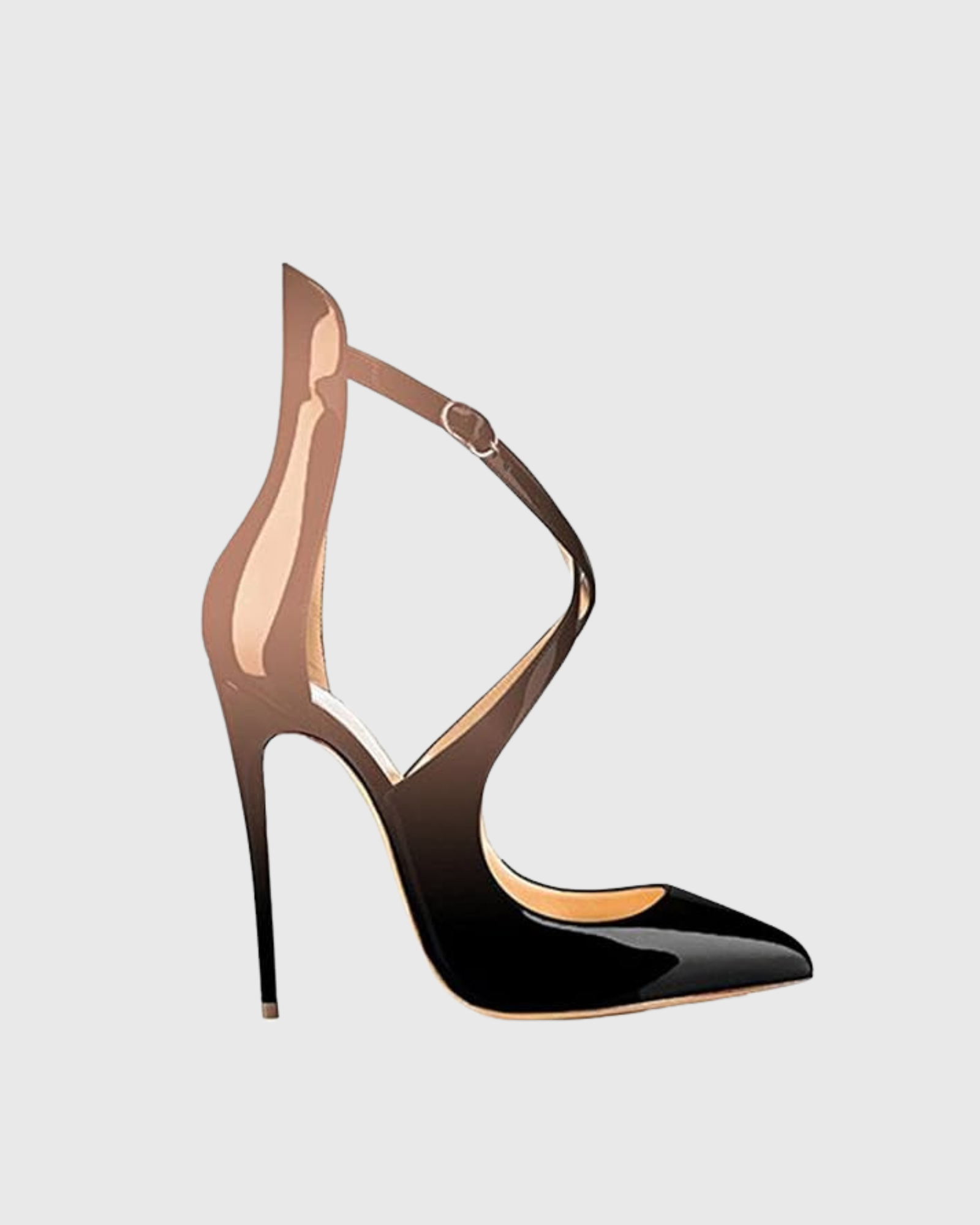 Introducing our Evelina Cross Strap Pumps, now available in a stunning gradient color! These pumps feature a stylish cross strap design and a sleek gradient color that will make a statement with every step. Elevate your look and add a touch of elegance to any outfit with these beautiful pumps.