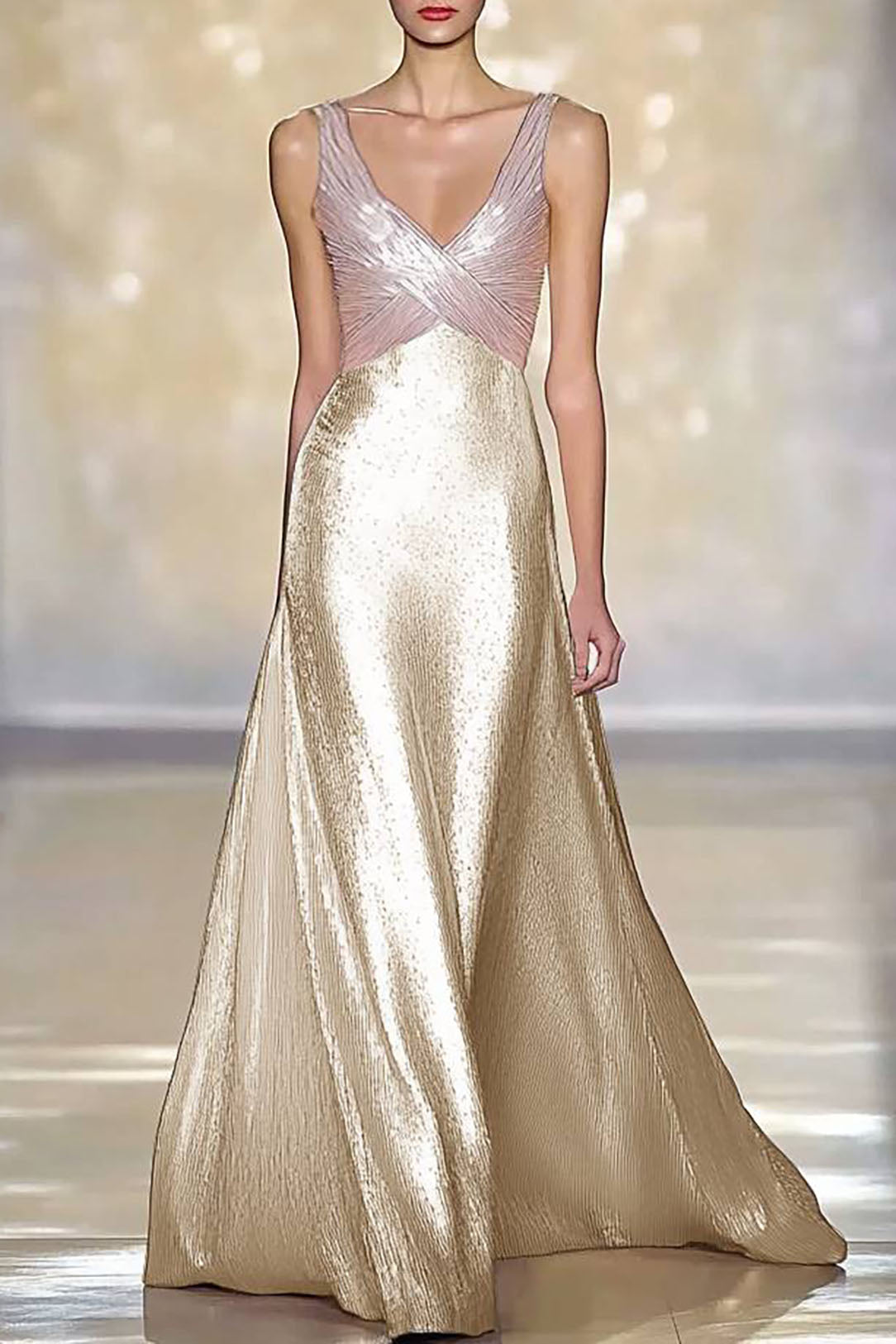 Step into the spotlight with this stunning Evening Grace Sequin Dress. Featuring a combination of pink and gold color blocks, the sequins catch the light in the most dazzling way. The sleeveless design and V-neckline offer a flattering and feminine silhouette, while the floor-length style adds elegance and drama. This dress is perfect for high-profile events such as evening galas, cocktail parties, or any occasion where you want to shine.
