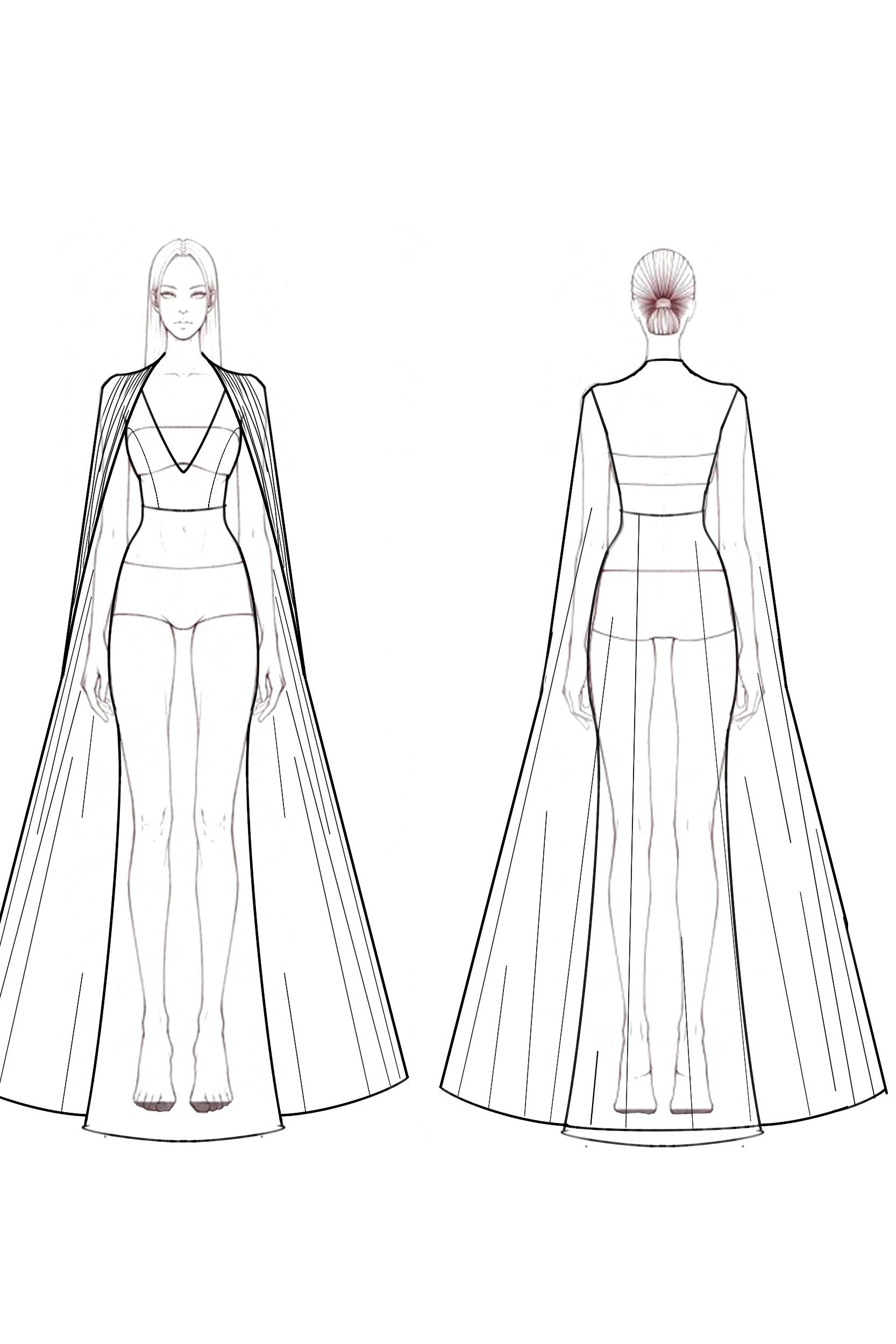 This elegant black and white V-neck gown is enhanced by a chic cape, adding a touch of drama. The floor-length design and graceful fit offer a stunning silhouette, making it perfect for formal occasions or evening galas. A timeless choice for a sophisticated, bold look.