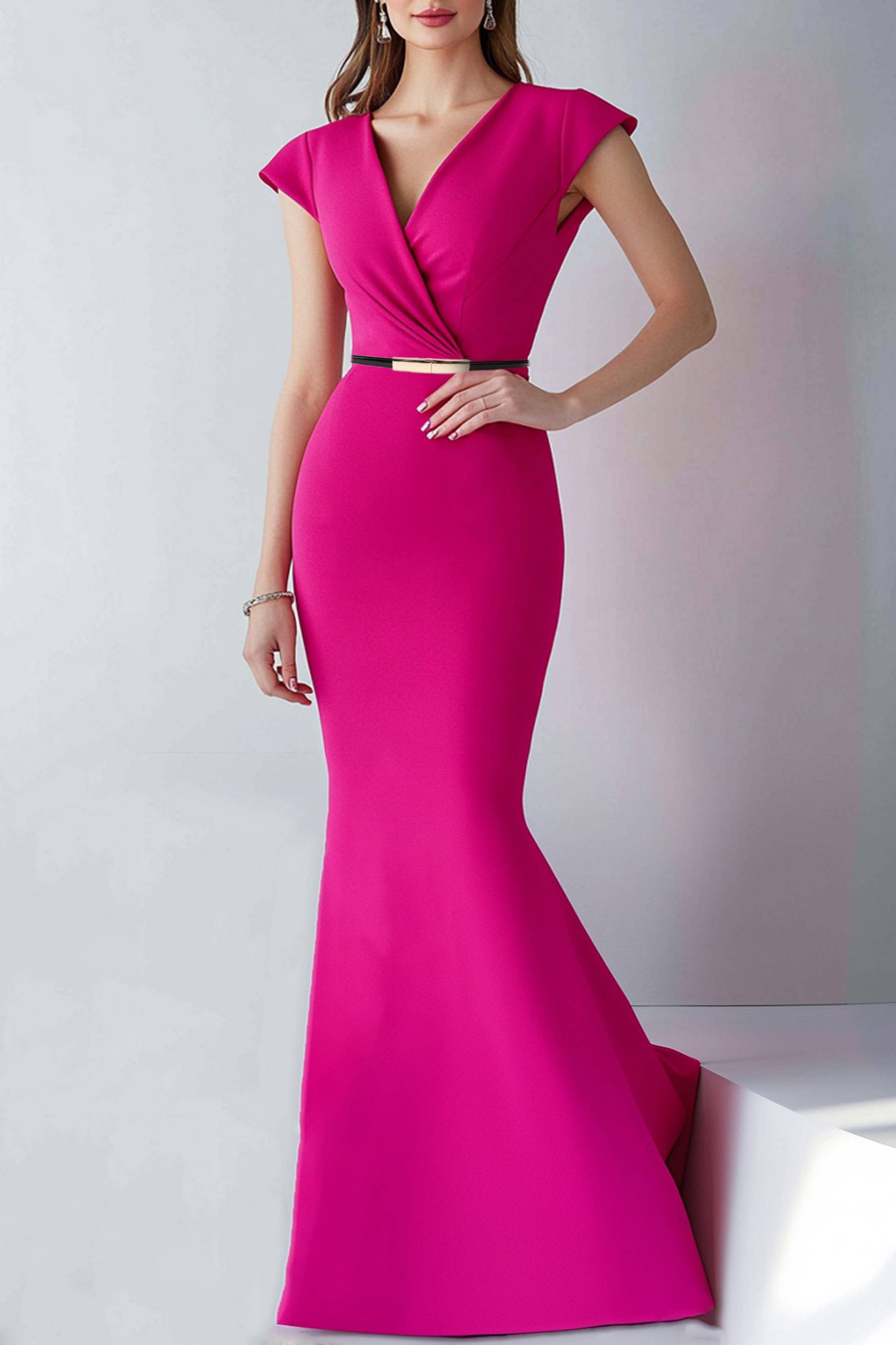Featuring a beautiful cross neckline and flattering mermaid silhouette, this fuchsia gown is a showstopper. Ideal for formal evenings, galas, and weddings, it delivers an unforgettable look with its vibrant color and elegant fit.
