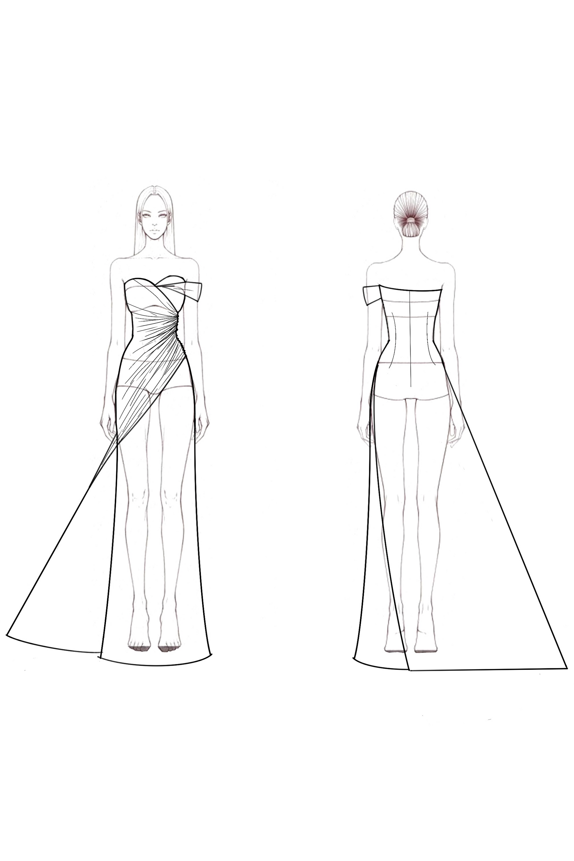 A show-stopping red evening gown featuring a dramatic one shoulder neckline and beautifully ruched design. The flowing train adds elegance and movement to every step, perfect for galas and special events where making a grand entrance matters.