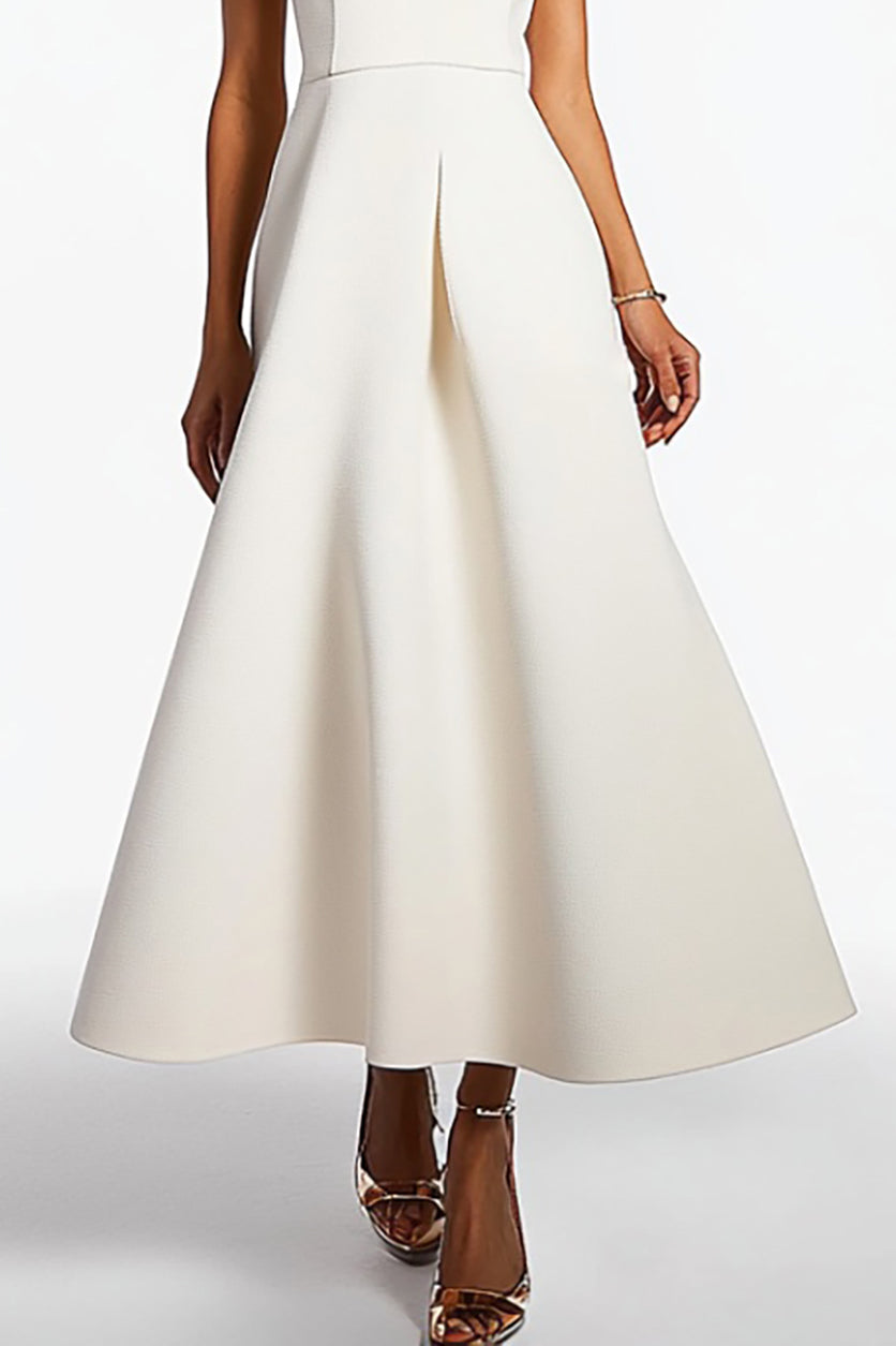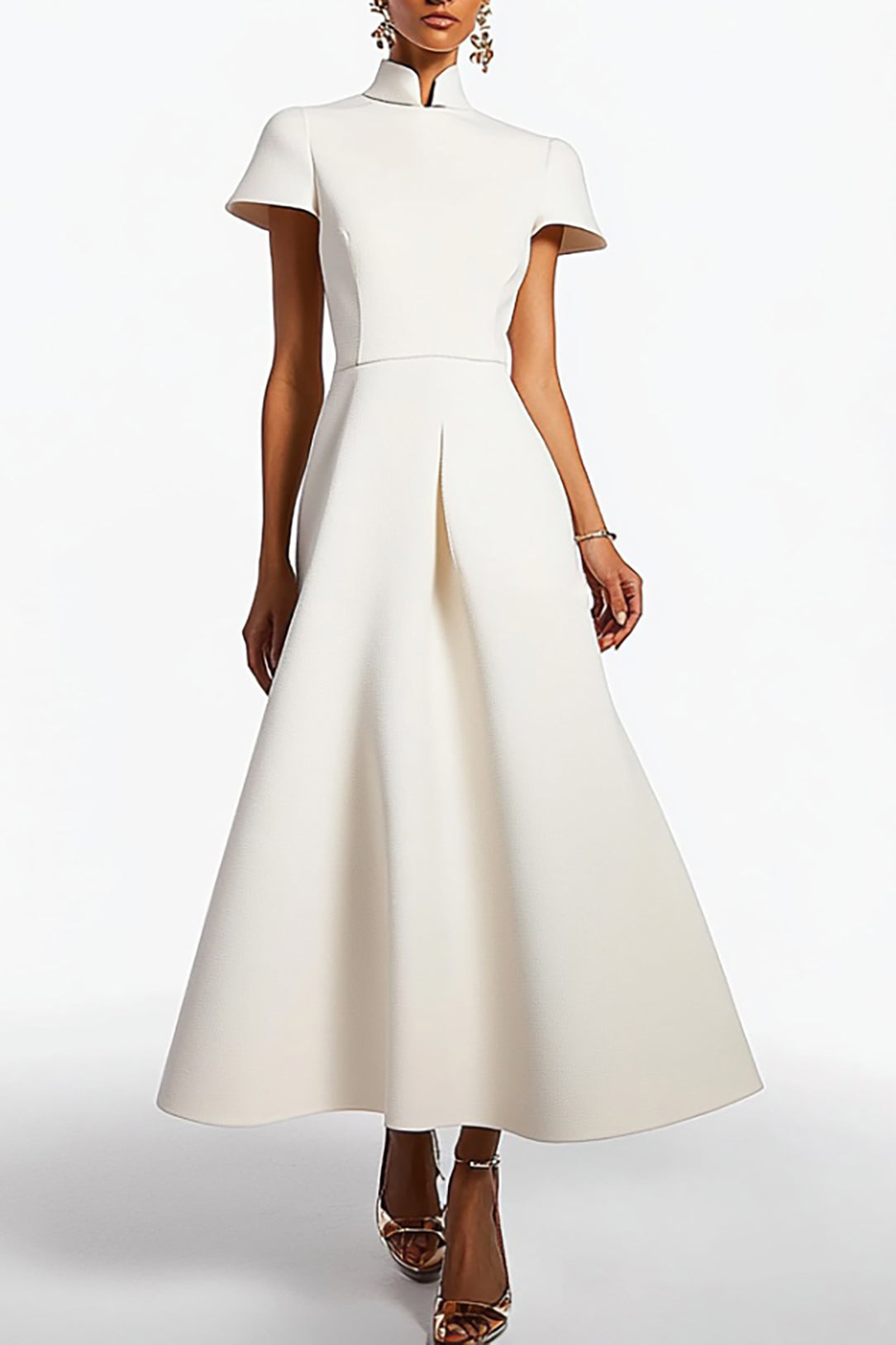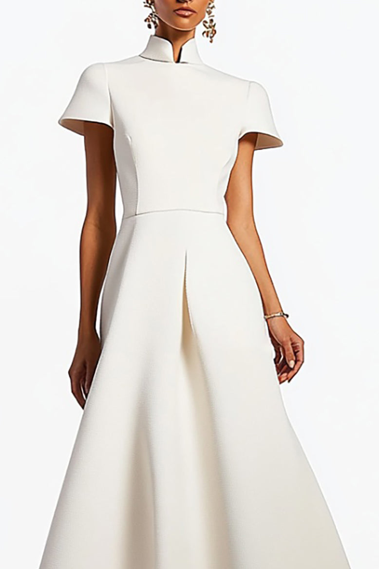 Evening Formal Dress White Stand Collar Short Sleeve Loose Maxi Dress