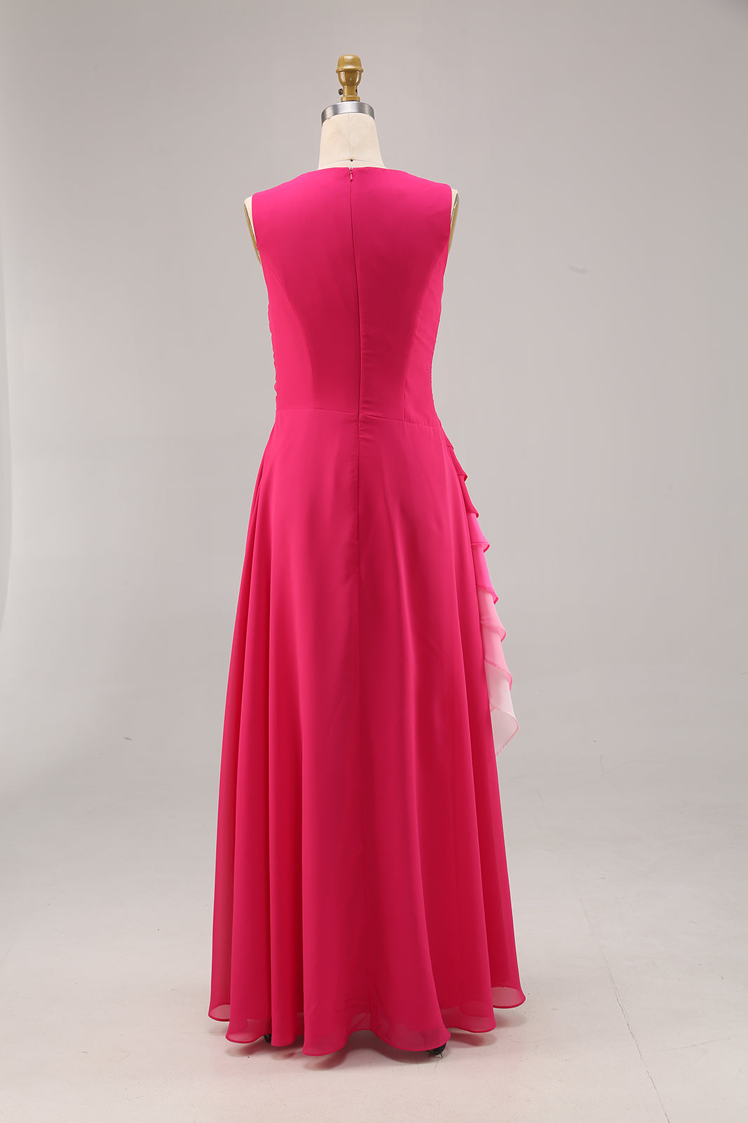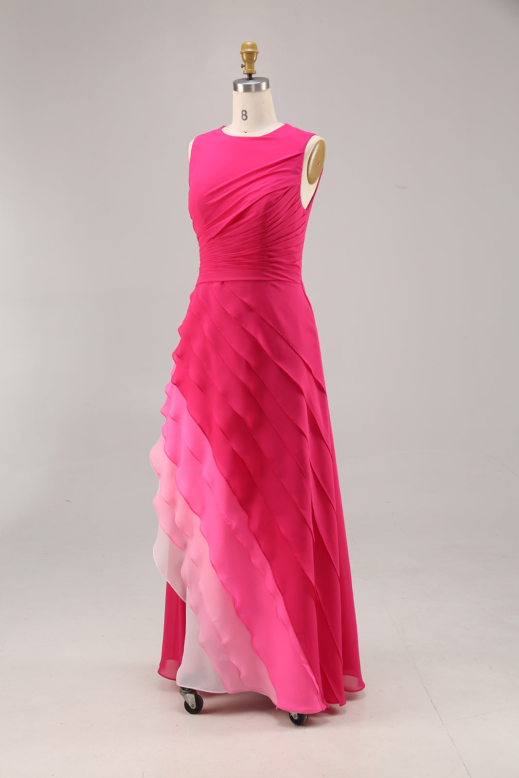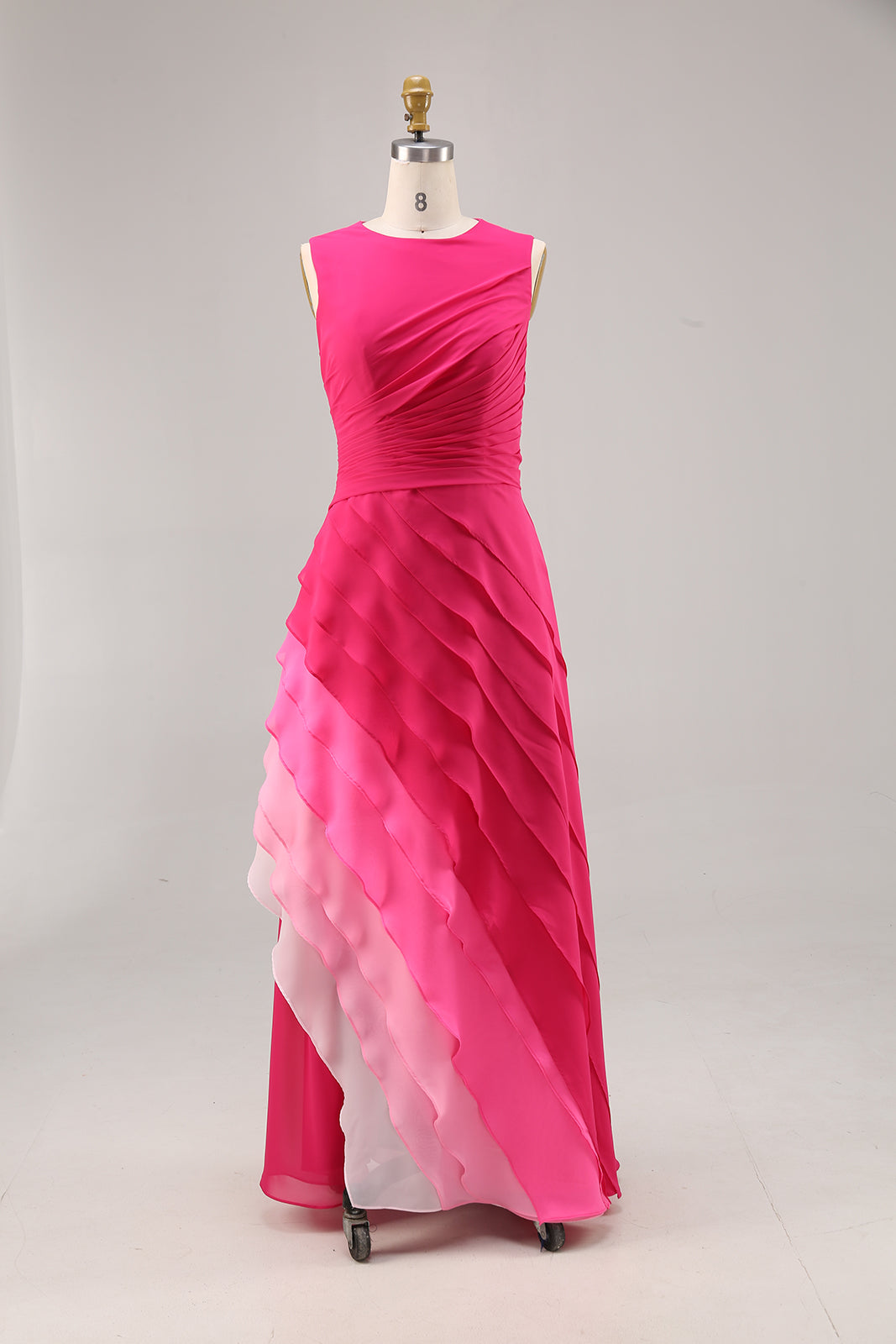 Evening Formal Gradient Dress Fuchsia Sleeveless Floor-Length Gown