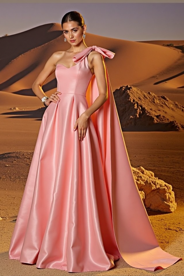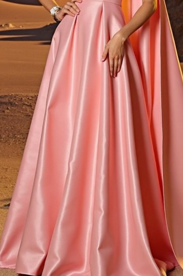 Exude elegance in this stunning pink satin evening gown, designed for formal occasions. The flattering one-shoulder neckline adds a modern twist, while the A-line silhouette gracefully flows into a floor-length skirt. The luxurious satin fabric and soft pink hue create a romantic, sophisticated look perfect for galas and black-tie events