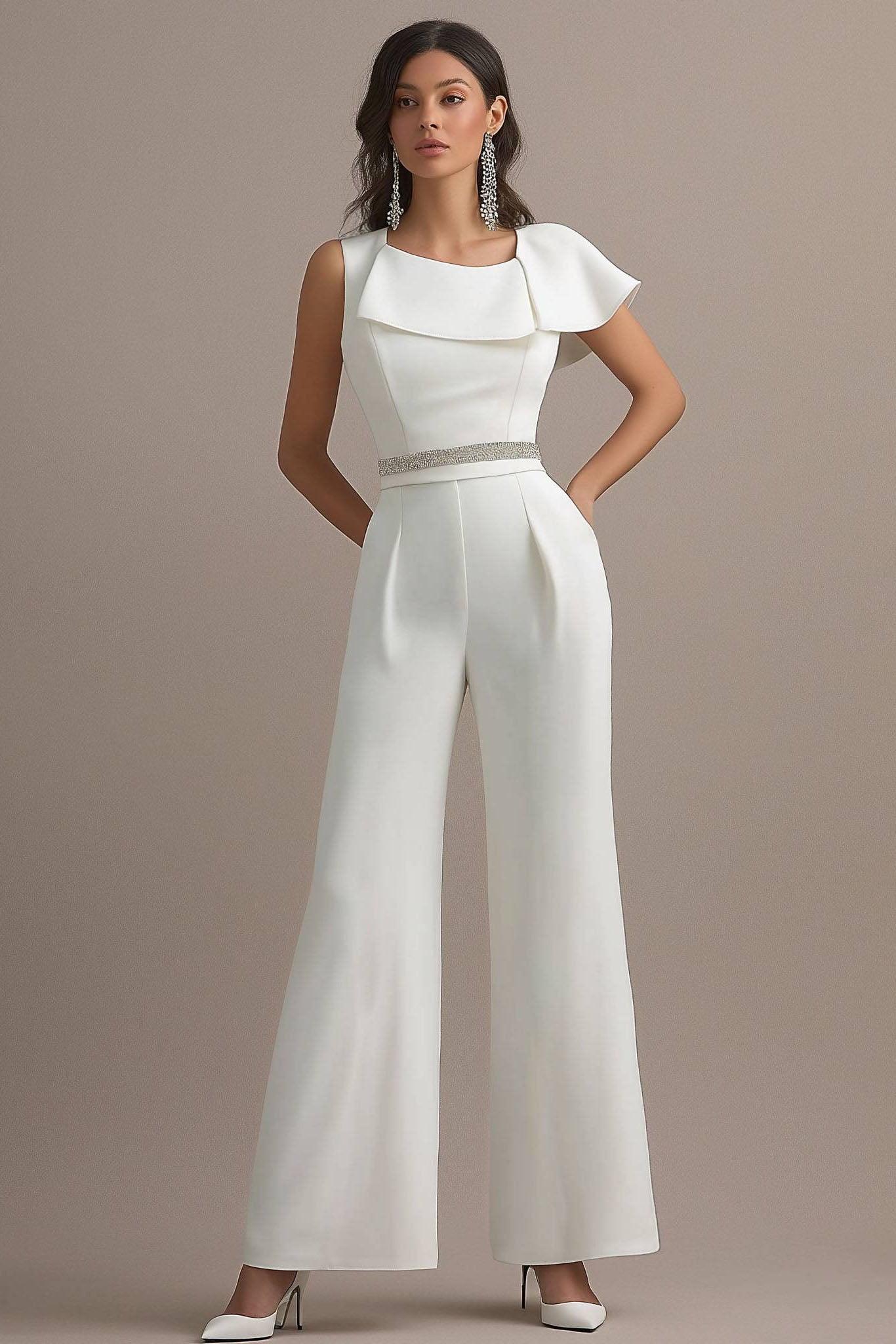 Elegant and modern, this white one shoulder jumpsuit is designed for standout evenings. The asymmetrical neckline adds sophistication, while wide leg pants create a graceful silhouette. Perfect for parties that call for sleek and fashion-forward looks.