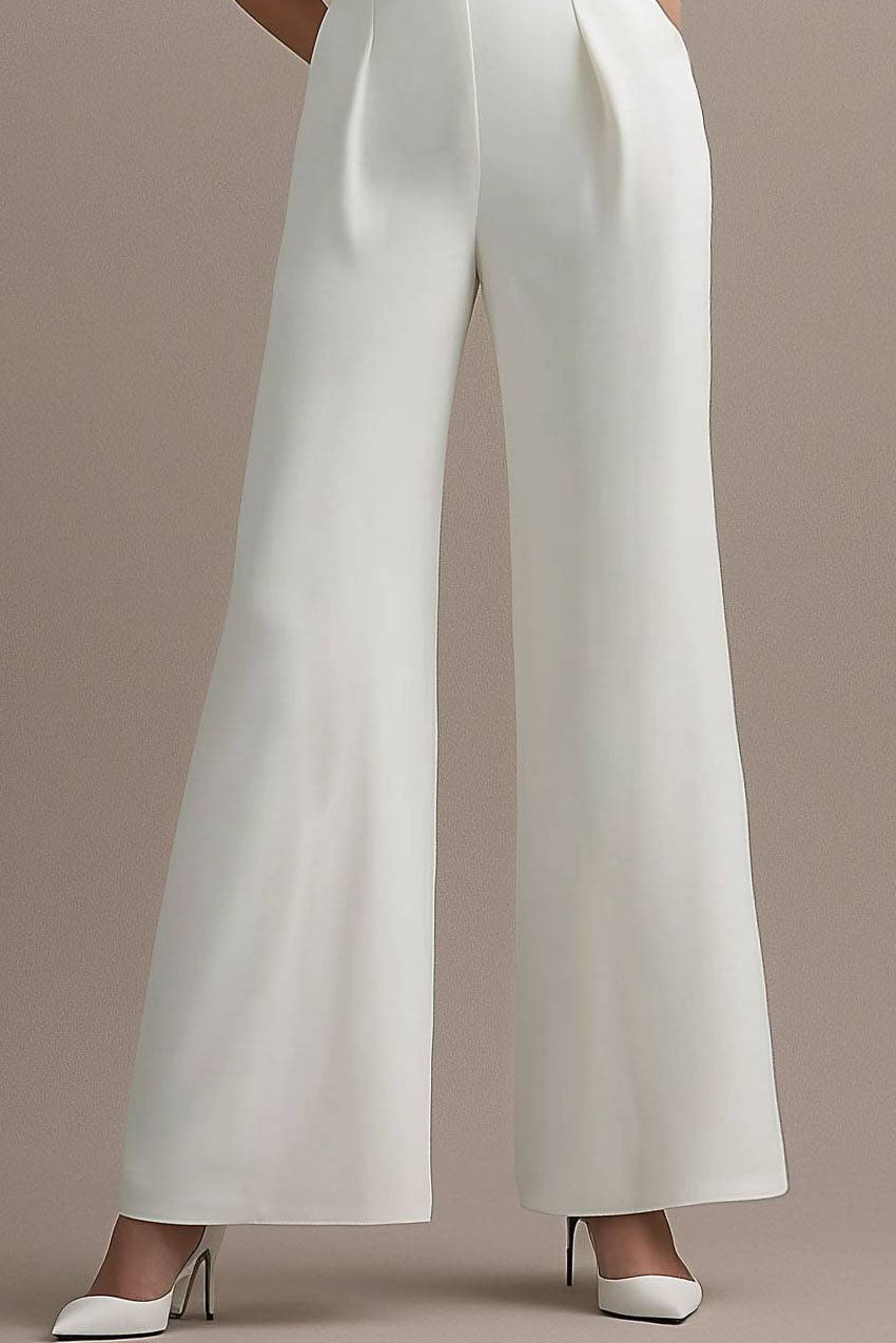 Evening Party Jumpsuit White One Shoulder Wide Leg Pants