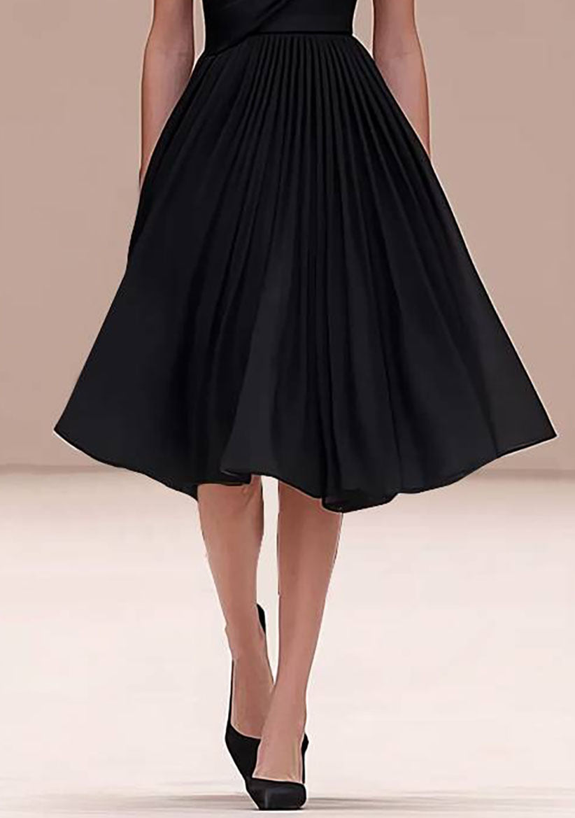 Evening Pleated Prom Dress One-Shoulder Black Knee Length Dress