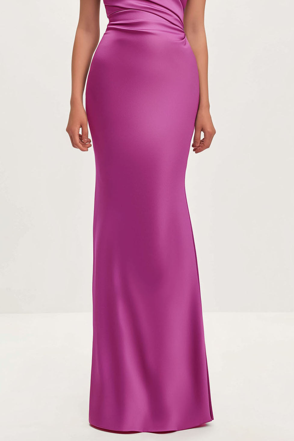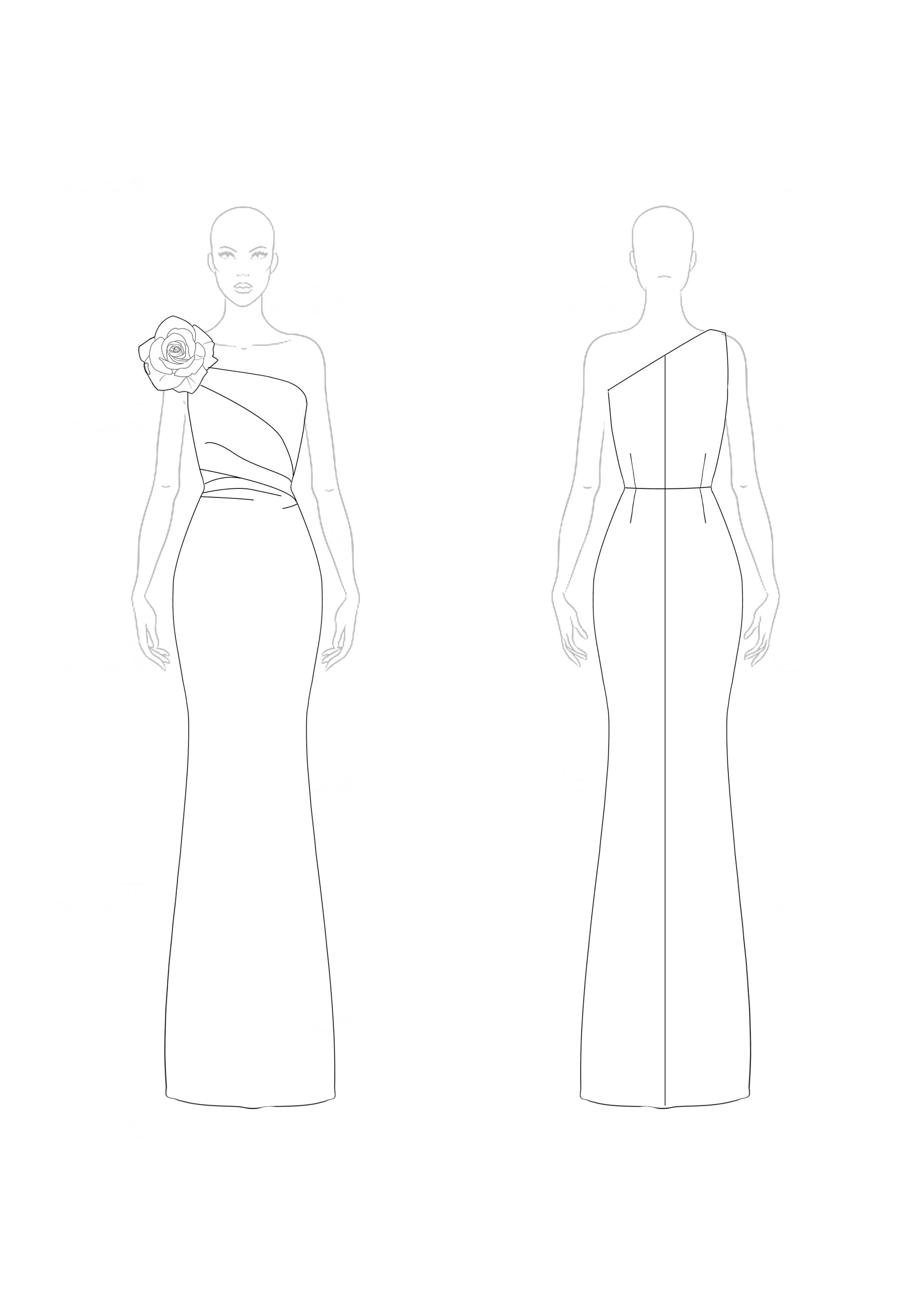 This exquisite satin evening gown features a one-shoulder neckline with 3D floral detailing on the shoulder. The smooth satin fabric drapes gracefully and falls to a floor-length length, making it a perfect choice for formal evenings and special occasions.