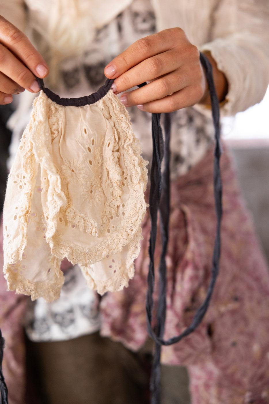 A butterfly-kiss wisp of eyelet lace strung on soot-gray silk - the Eyelet Fairen Jabot is a simple, supple gesture to the basics of enchantment.