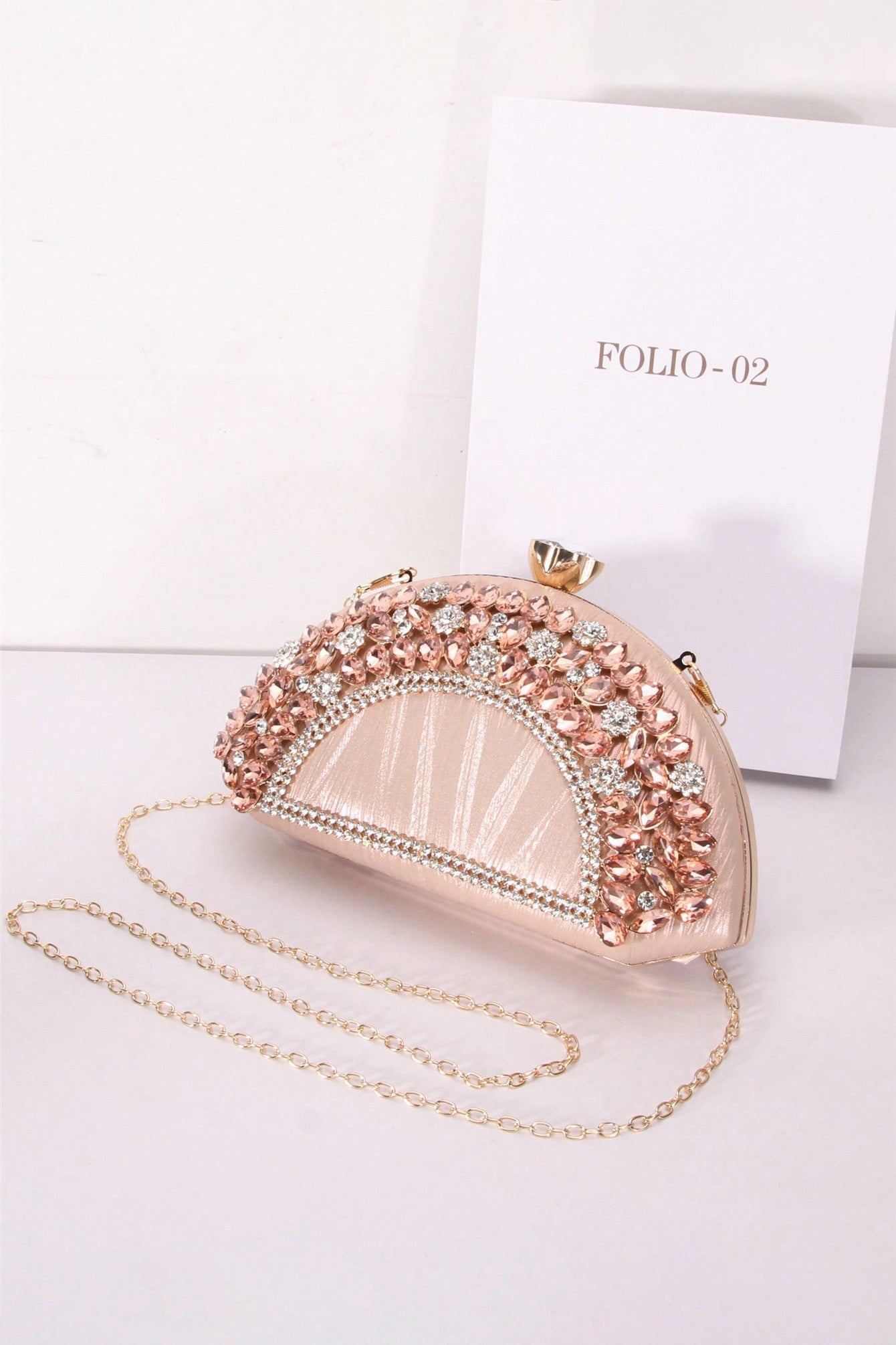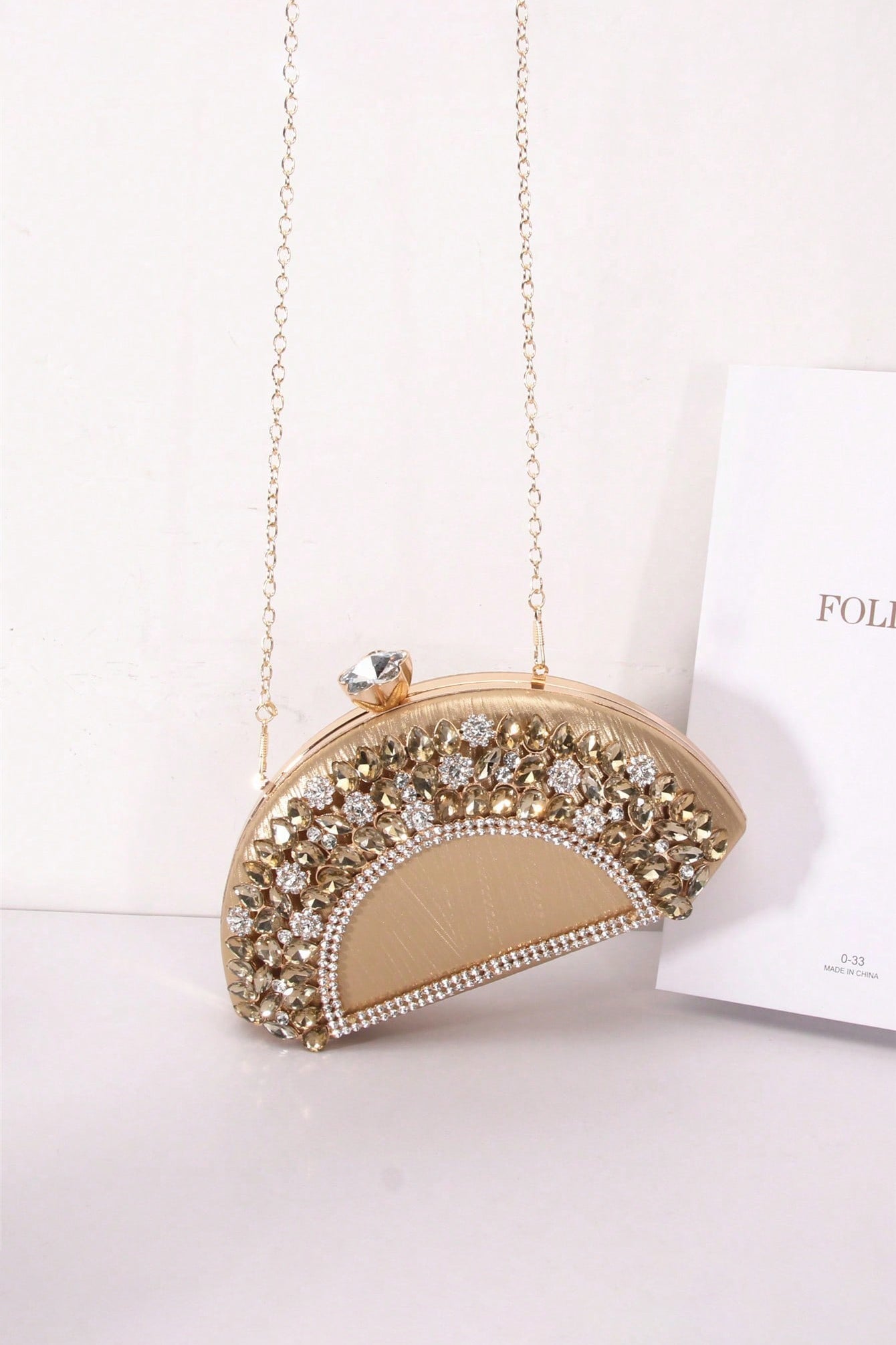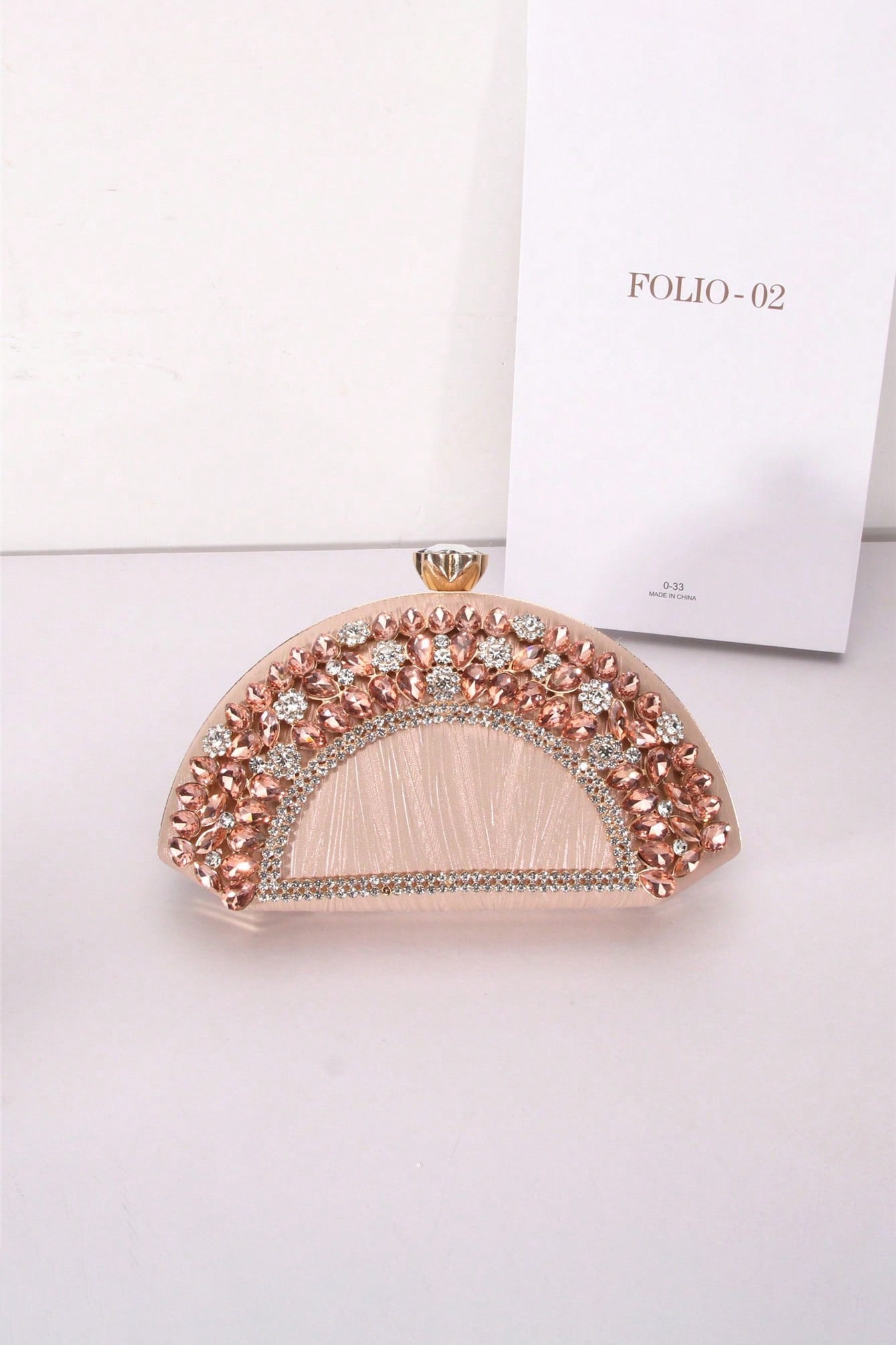 Fan-Shaped Rhinestone Crossbody Bag Alloy PU Shoulder Bag Clip Buckle Party Bag