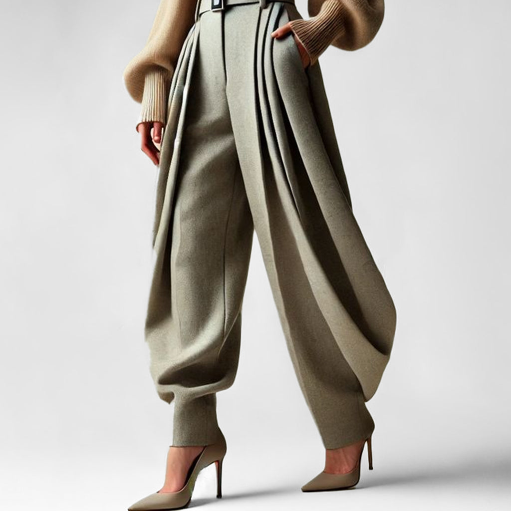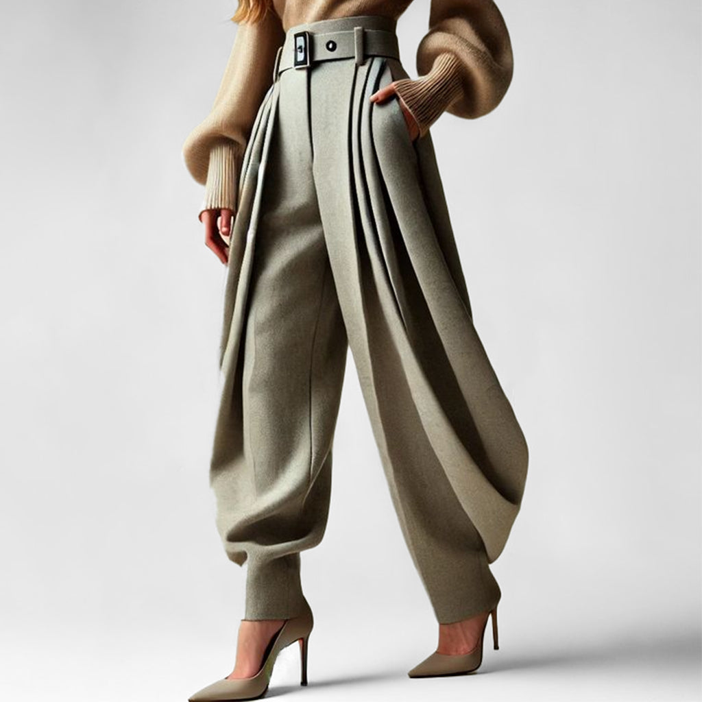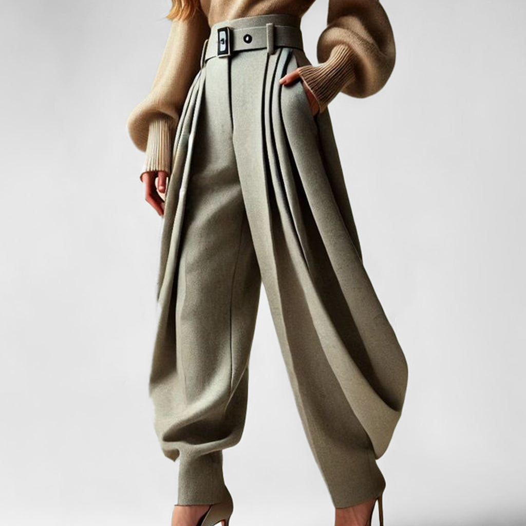 Fashion High Waist Belted Pleated Slant Pocket Balloon Pants