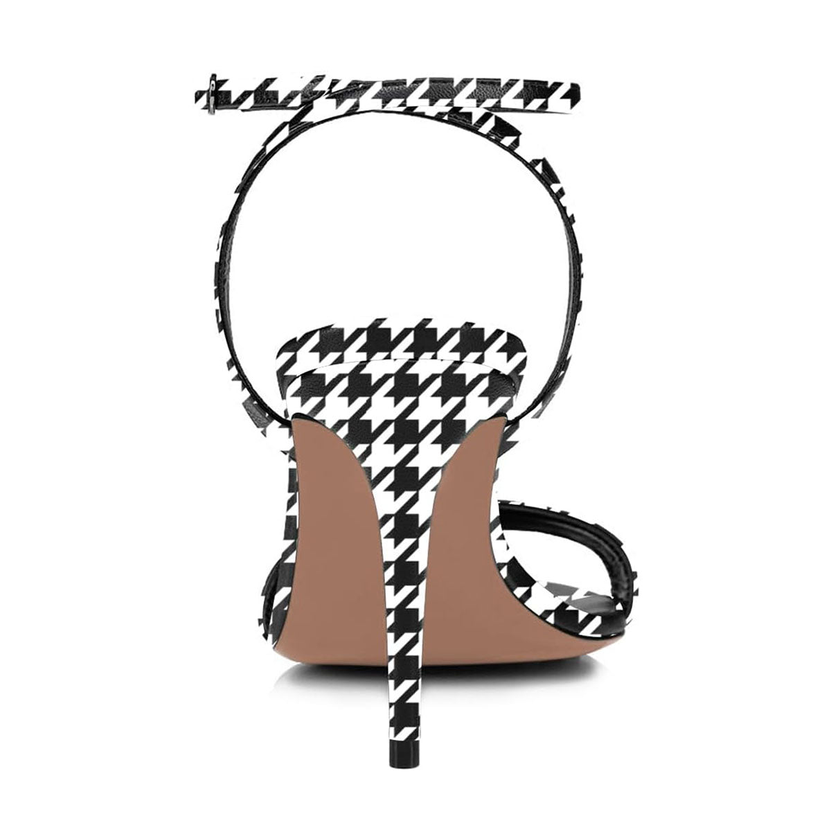 - Special Designs: The sandals feature houndstooth design with a buckle ankle strap and a stiletto heel.