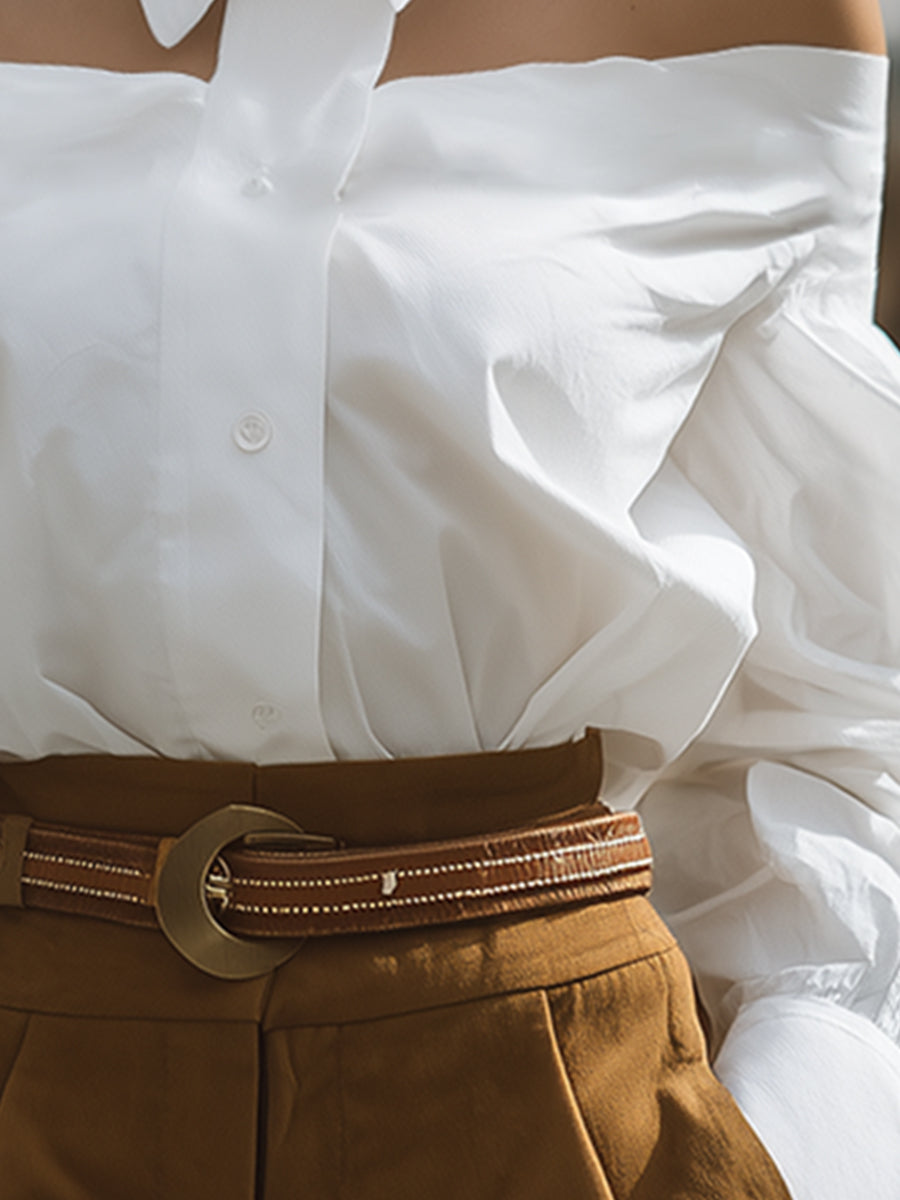 Fashionable Professional Lapel White One-shoulder Long-sleeved Blouse